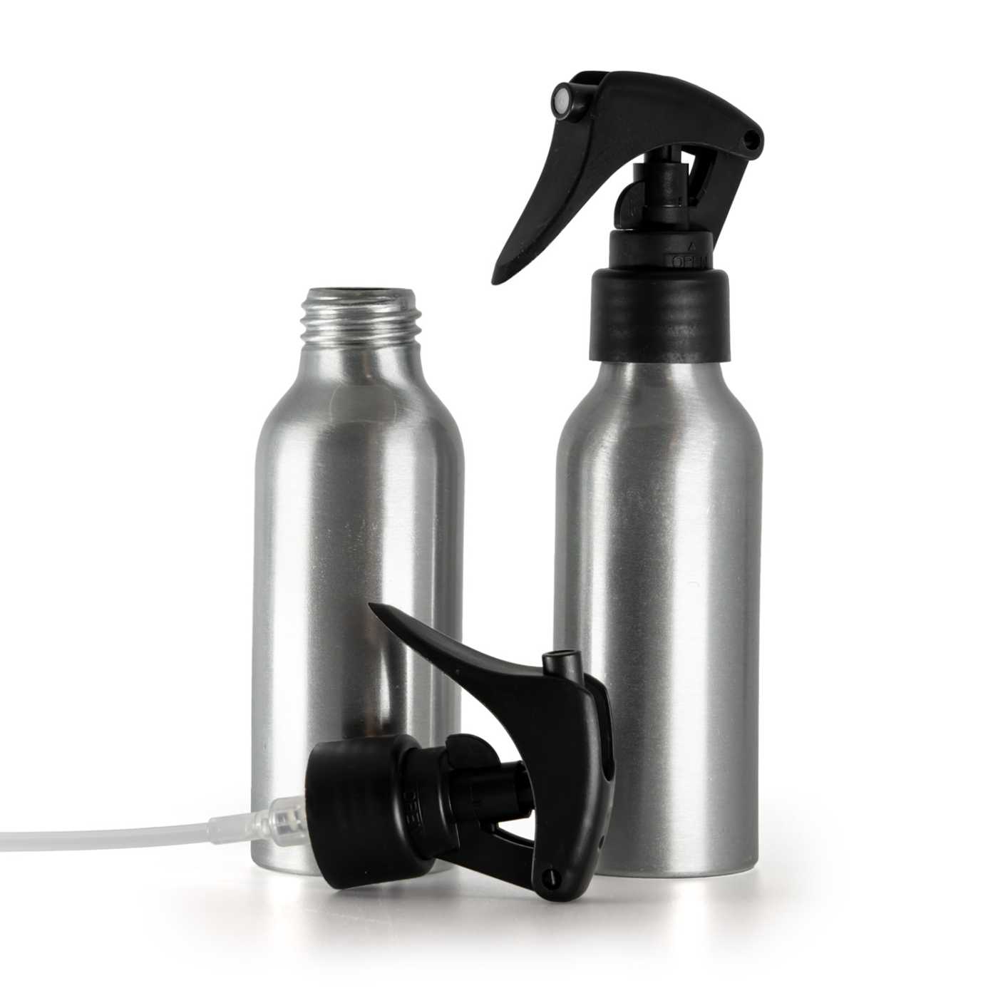 Alumínium palack, matt fekete mini ravaszpermetező, sima gallér, 100 ml