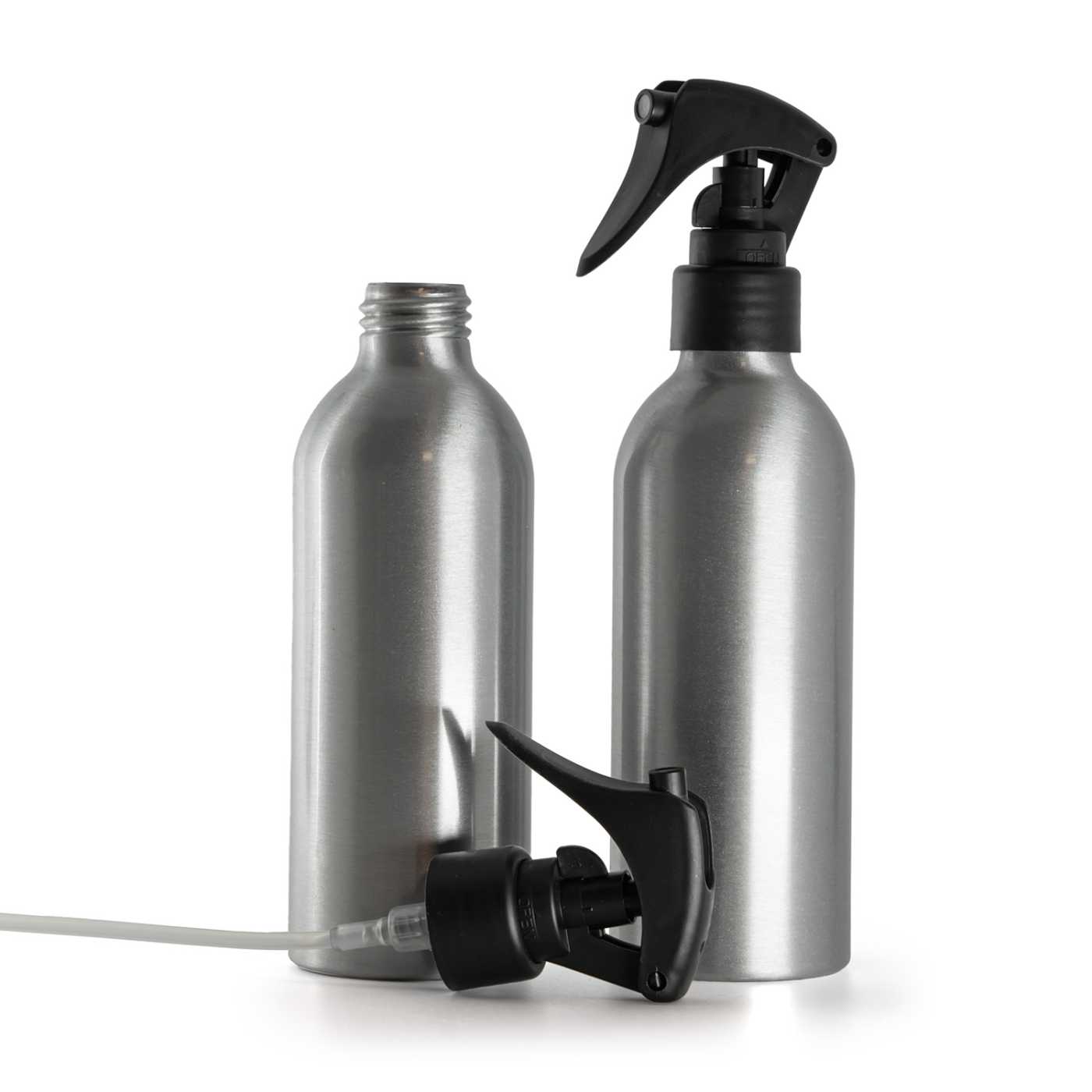 Matt fekete kézi permetezőfejjel ellátott alumíniumpalack professzionális megoldást jelent folyékony termékek csomagolására, ahol fontos a pontos és kényelmes applikáció. A masszív fémcsomagolás és a minőségi mechanikus permetező kombinációjának köszönhetően ideális olyan termékekhez, amelyek a permetfej beállításától függően finom ködként vagy sugárban kerülnek kijuttatásra. A fém csomagolás segít megvédeni az érzékenyebb tartalmat a külső hatásoktól, és egyben esztétikus és reprezentatív megjelenést biztosít az otthoni és a professzionális gyártásban egyaránt.