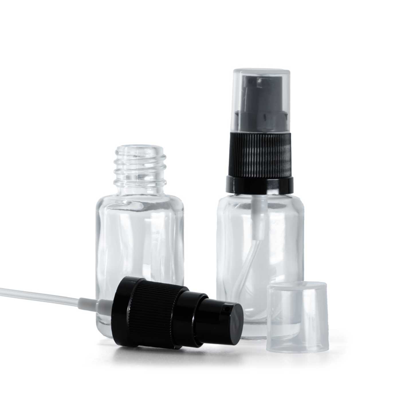 Átlátszó kerek üvegpalack krémpumpával 12 ml