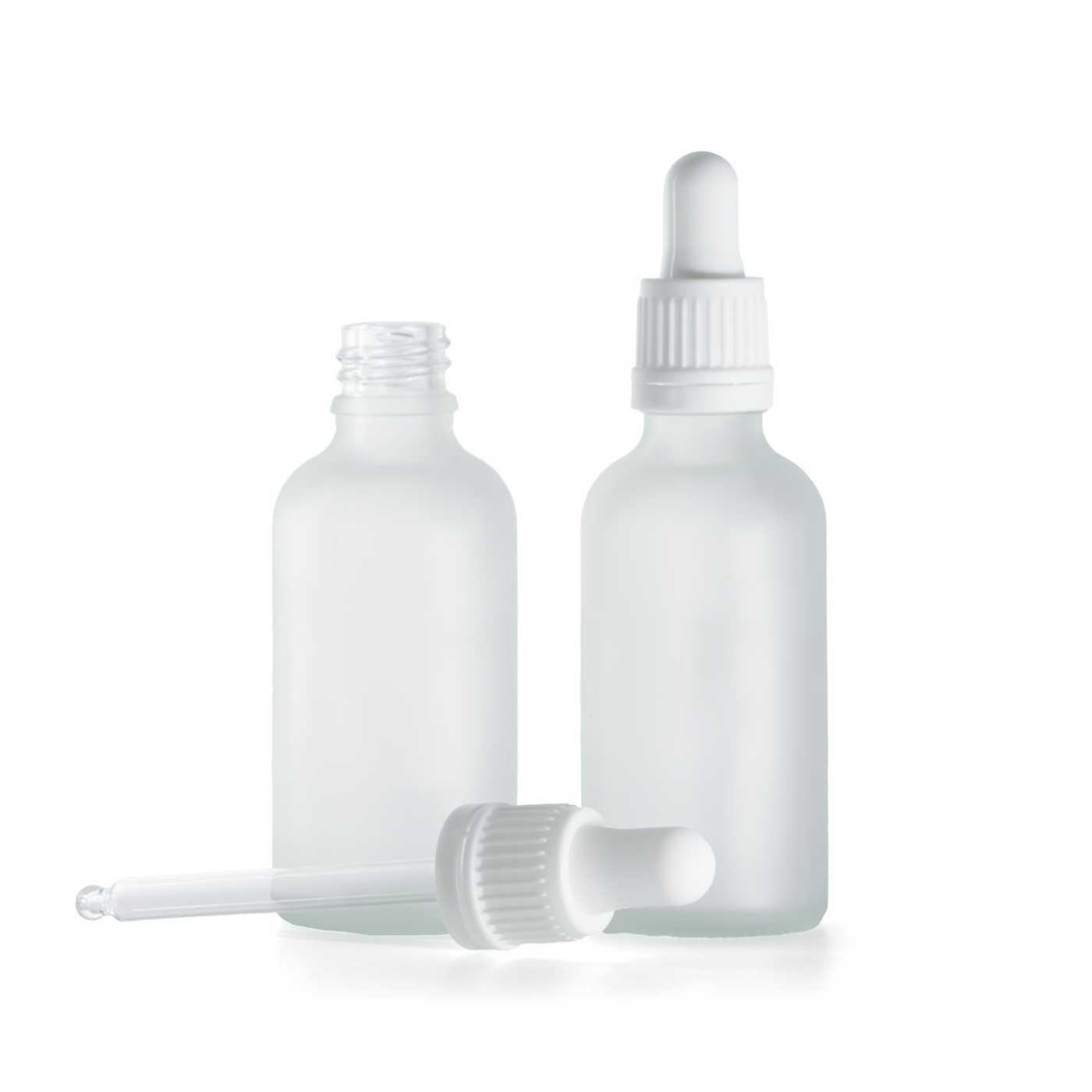 Átlátszó matt üvegpalack, fehér cseppentő, 50 ml