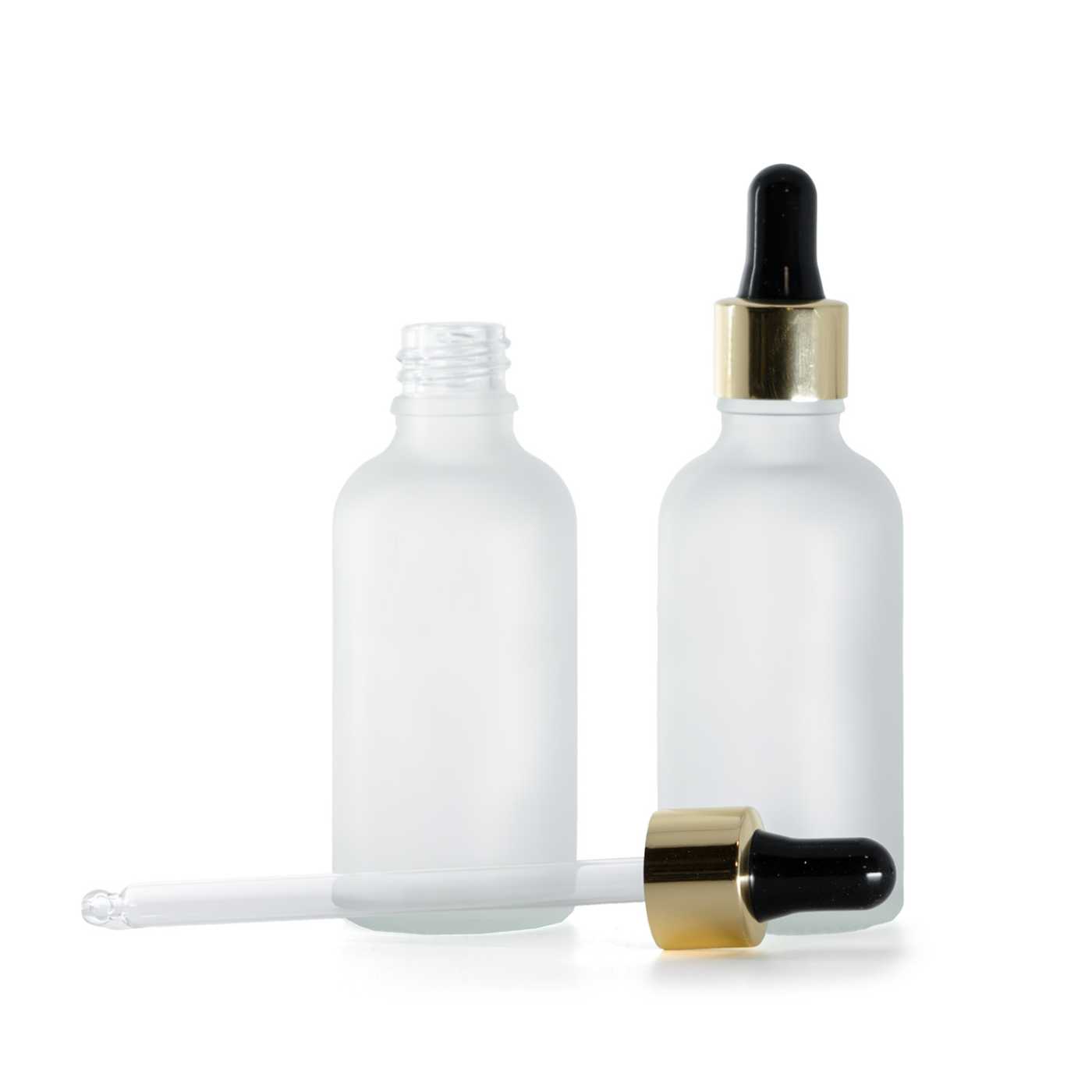 Átlátszó matt üvegpalack fekete-arany pipettával, 50 ml