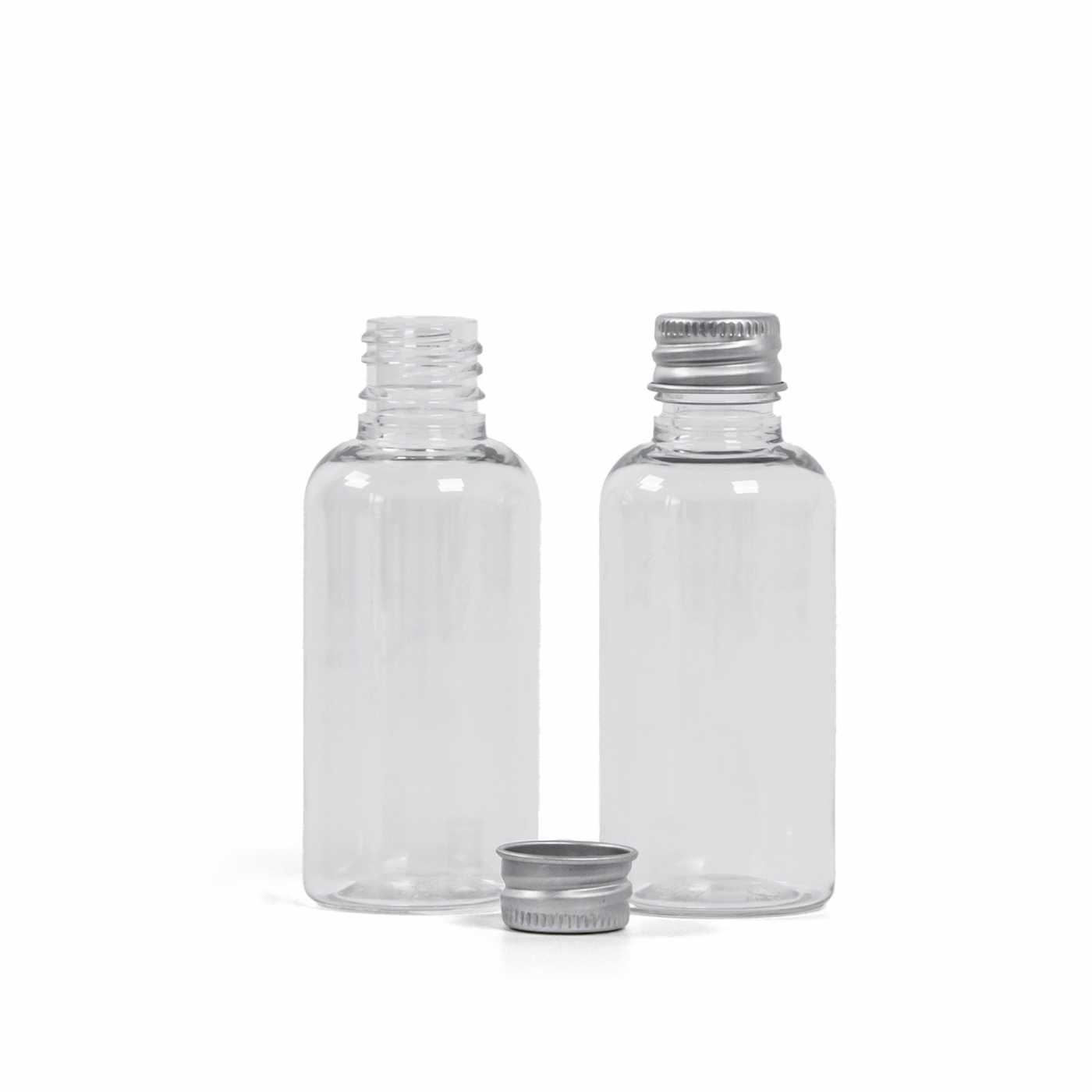 Átlátszó műanyag palack alumínium kupakkal, 50 ml
