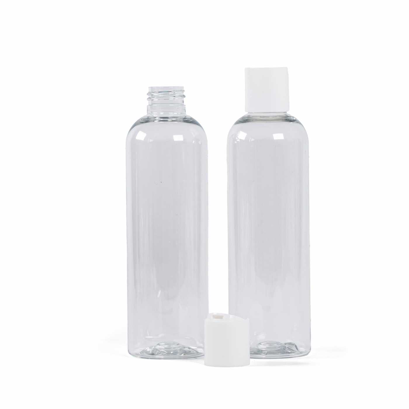 Átlátszó műanyag palack, fehér diszktop kupak, 250 ml
