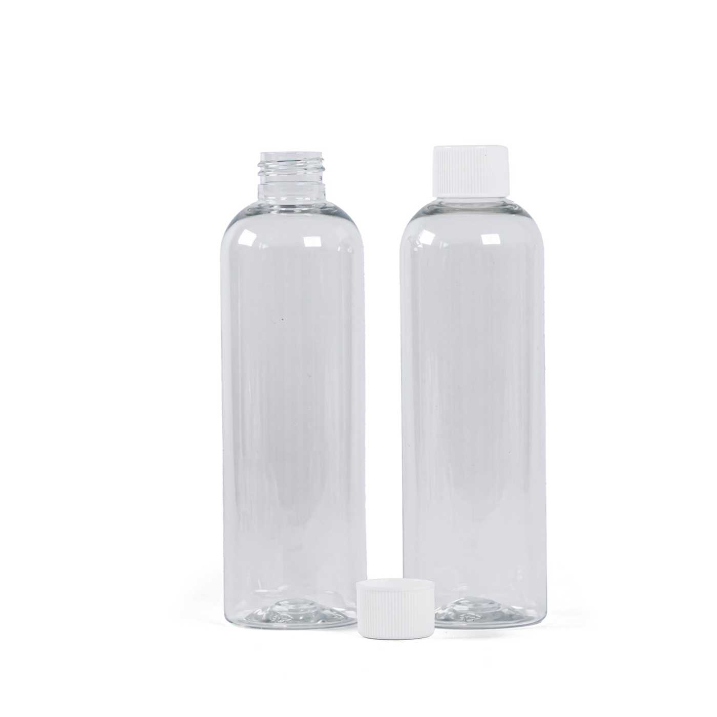 Átlátszó műanyag palack fehér kupakkal, 250 ml