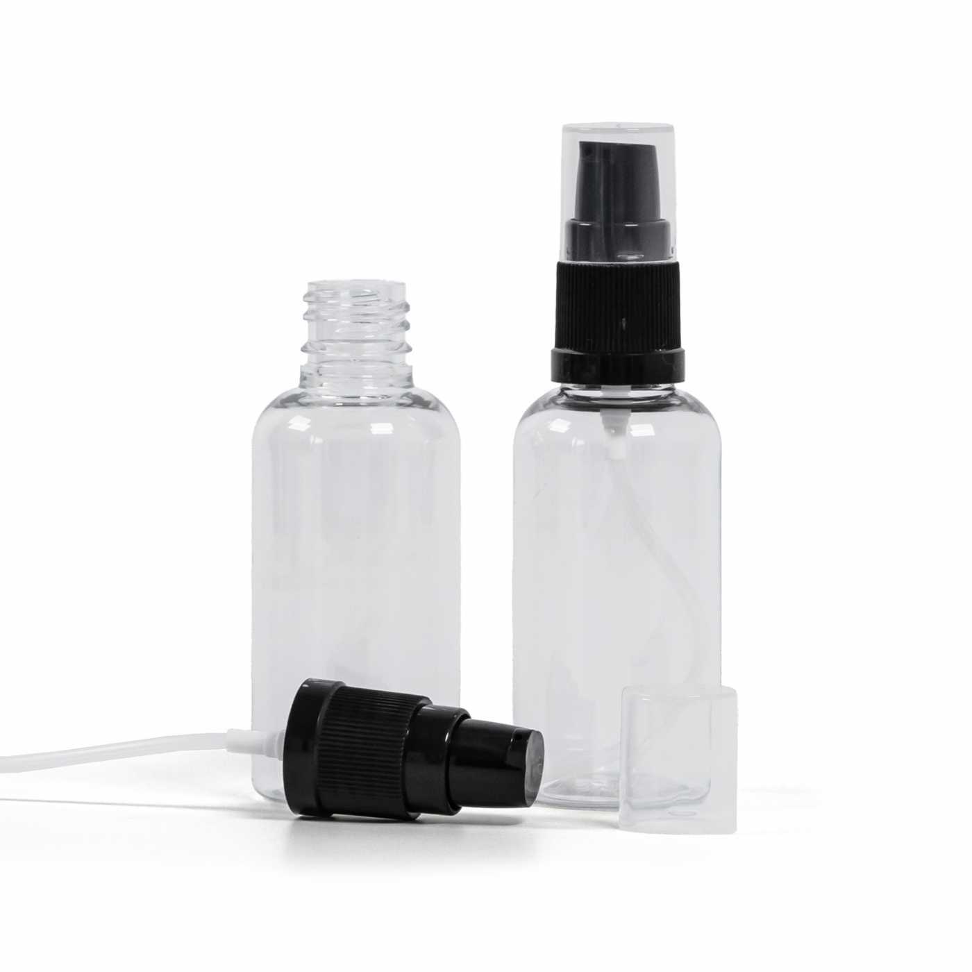 Átlátszó műanyag palack fekete lotion adagolóval, 50 ml
