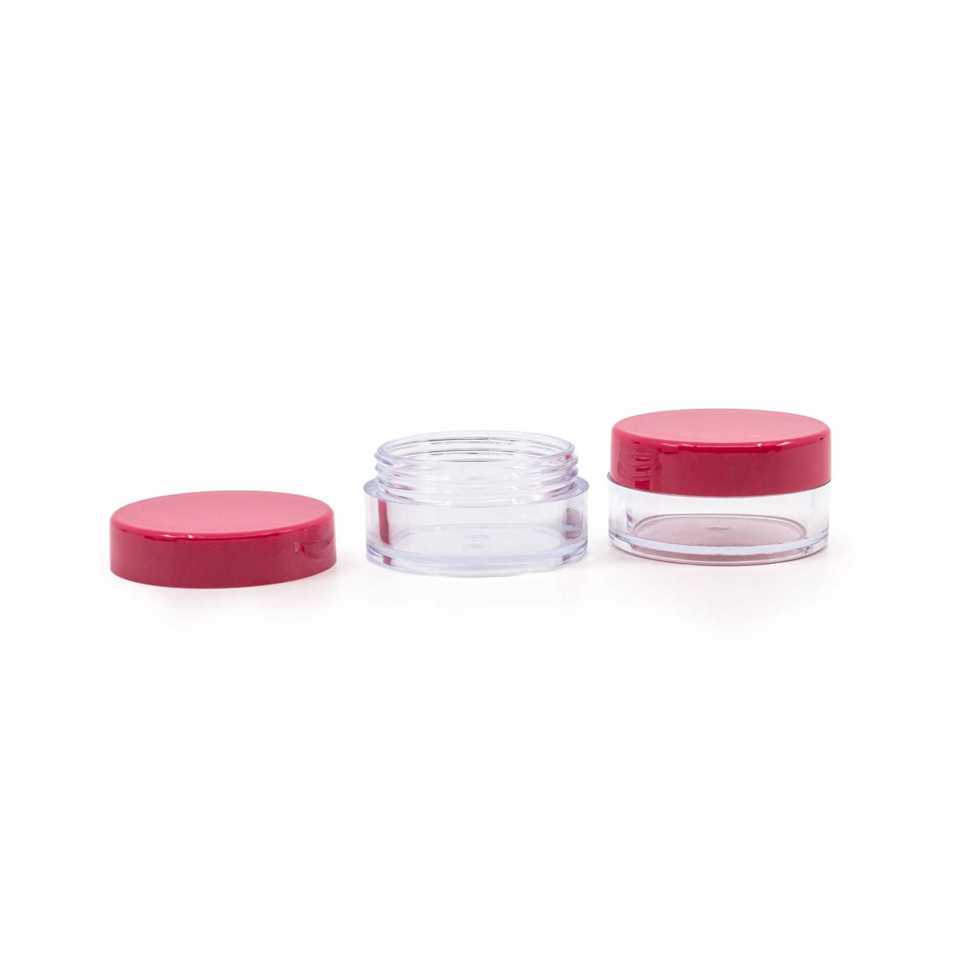 Átlátszó műanyag tégely, rózsaszín kupak, 10 ml