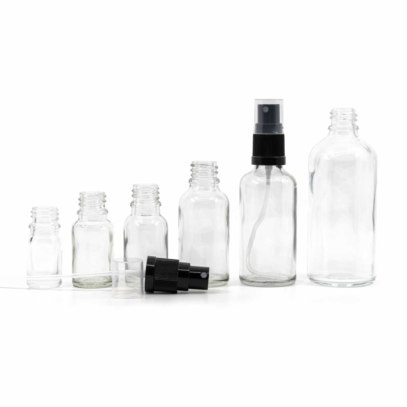 Átlátszó üvegpalack fekete permetezőfejjel 10 ml