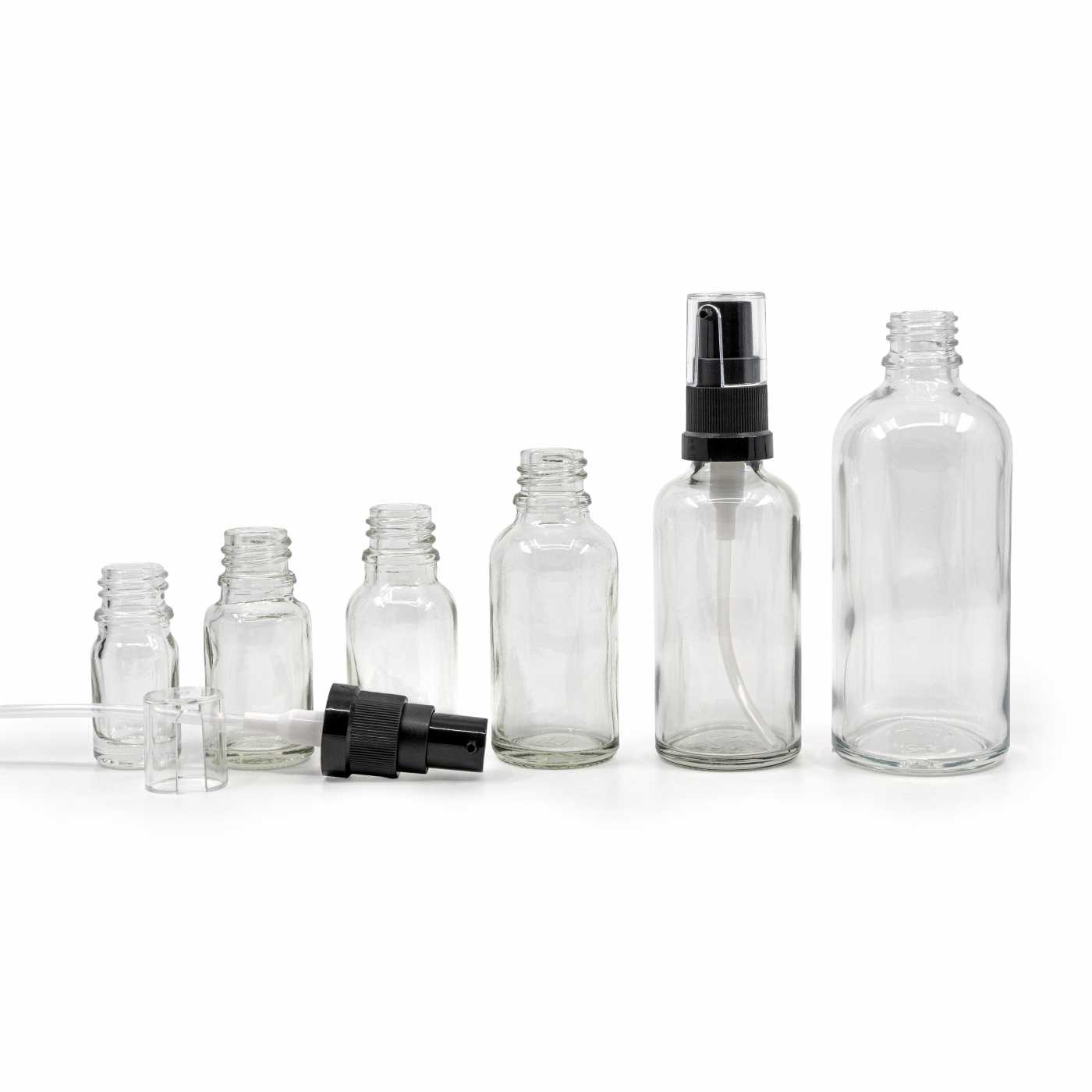 Átlátszó üvegpalack olajpumpával 15 ml