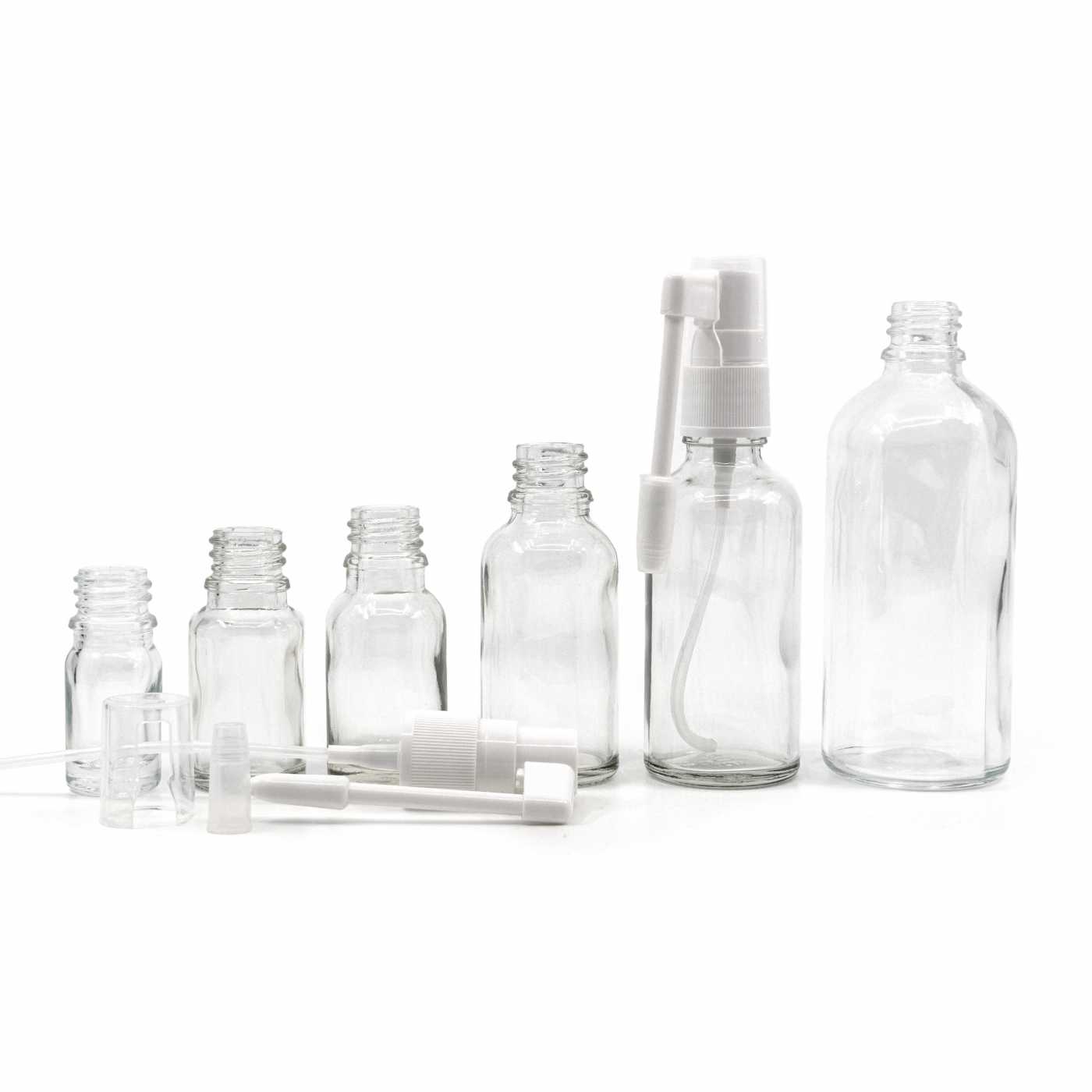Átlátszó üvegpalack, orális permetező, 30 ml