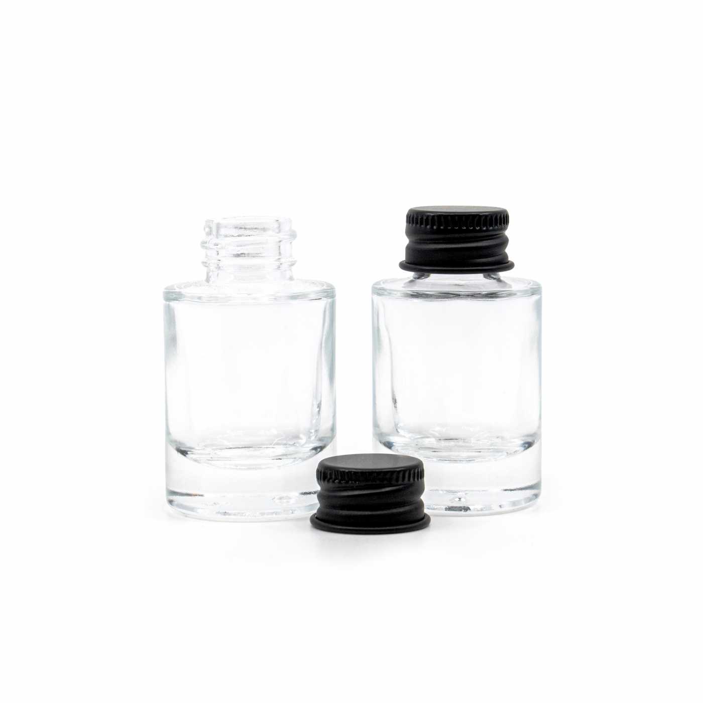 Átlátszó üvegpalack vastag fenékkel fekete alumínium kupakkal 10 ml