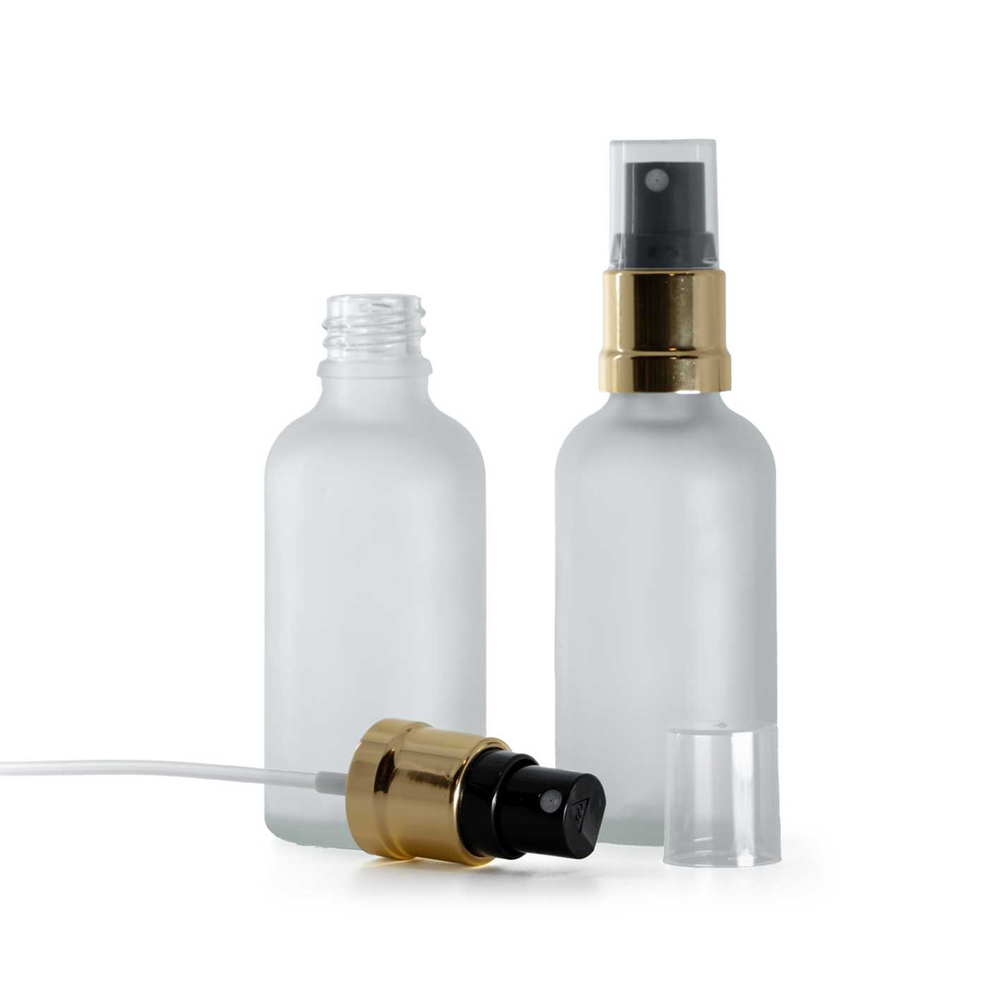 Áttetsző matt üvegpalack fekete-arany permetezőfejjel, 50 ml