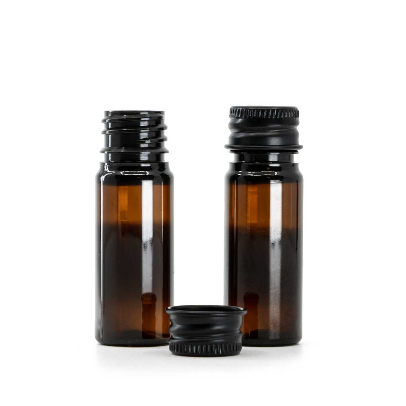 Barna műanyag palack, fekete alumínium kupak, 10 ml