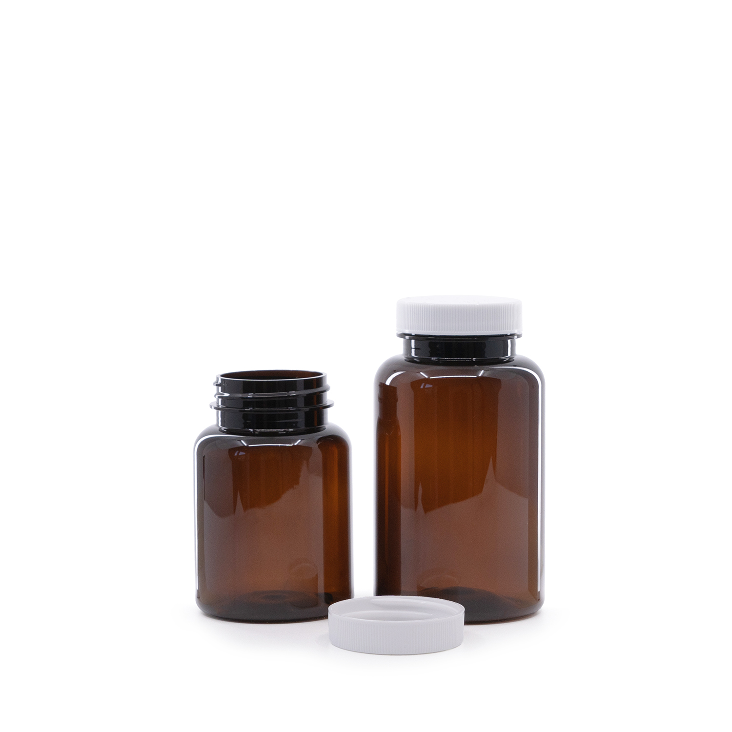 Barna műanyag tablettás tégely, fehér kupak, indukciós zárófólia, 250 ml