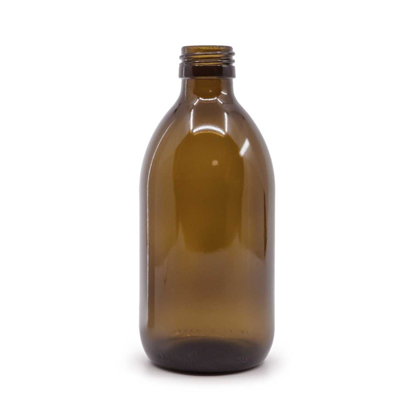 Borostyánszínű kerek szirupos üveg PP28S 300 ml