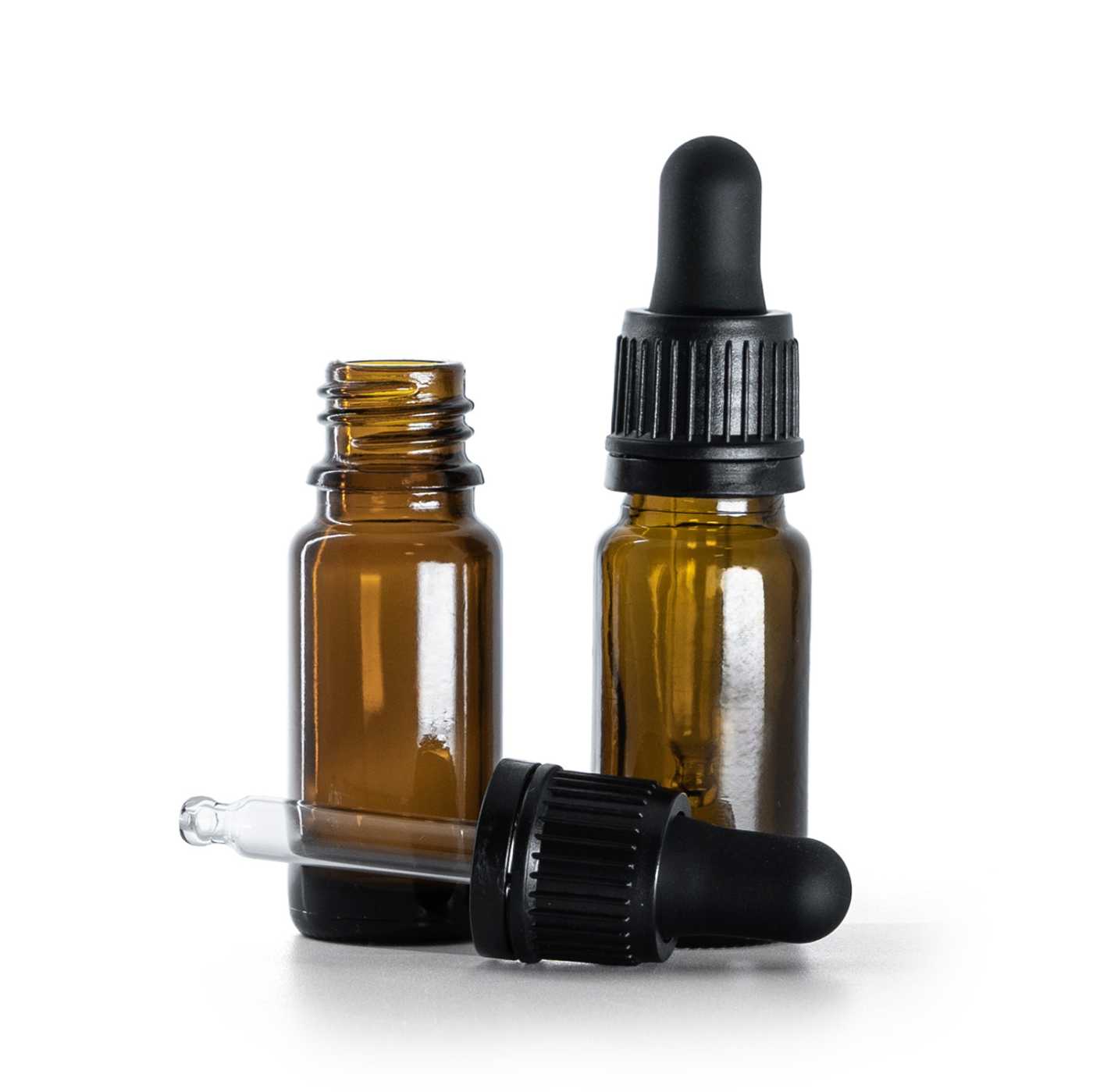 Borostyánszínű üvegpalack B típus, karcsú, fekete garanciazáras cseppentővel, 10 ml