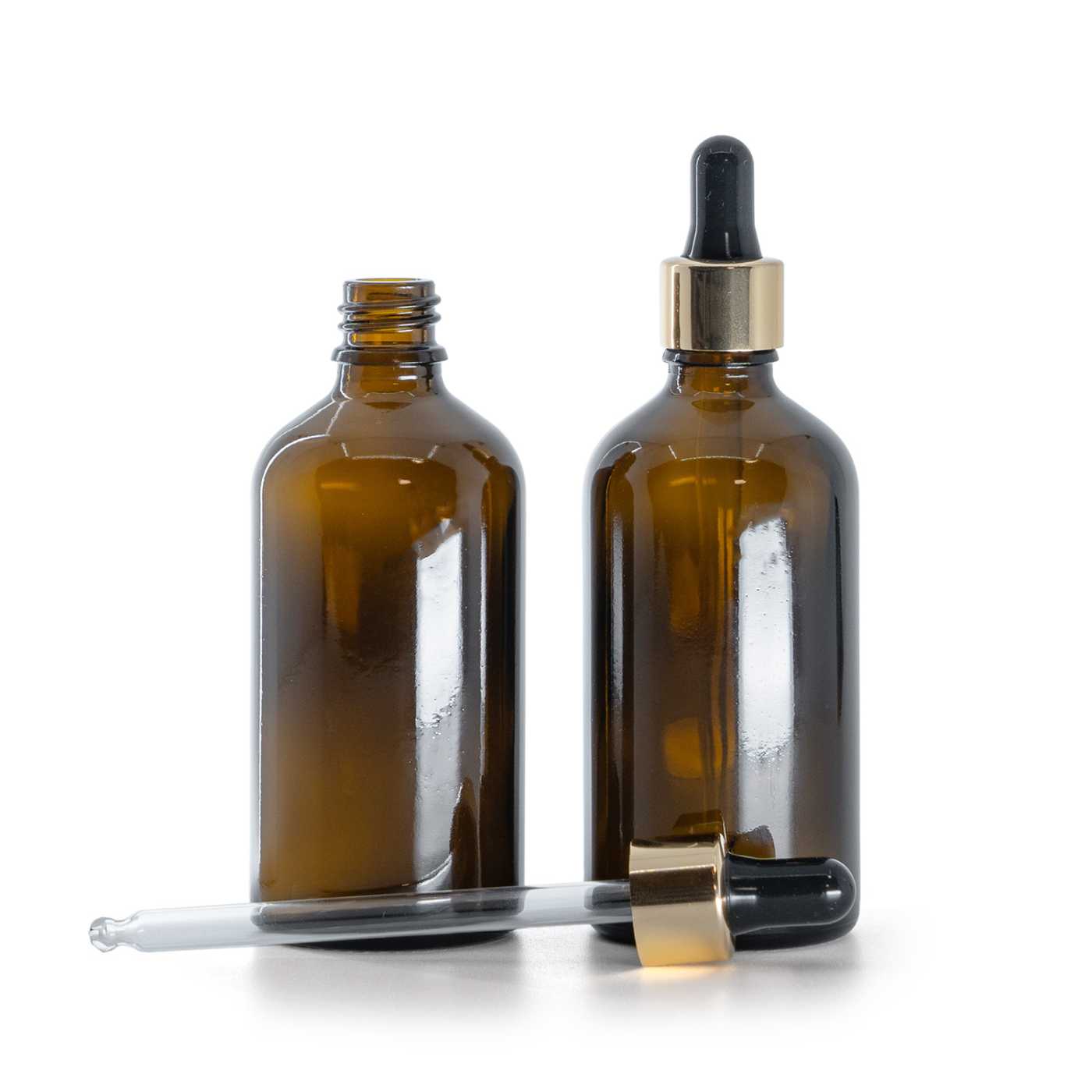 A fekete-arany cseppentővel ellátott üvegpalack - fiola elegáns és praktikus tartály folyékony és félfolyékony termékek pontos adagolásához. Az üveg kémiailag stabil anyag, amely nem veszi át az illatokat, és segít megőrizni a formulák állagát és minőségét. A sötét üvegnek köszönhetően a csomagolás természetes módon csökkenti az érzékeny összetevők fényhatását , és segít megvédeni a tartalmat az UV-sugárzástól (pl. olajok, kivonatok és hatóanyagokat tartalmazó keverékek). A csomagolás élelmiszer-minőségi tanúsítvánnyal rendelkezik, ezért a higiéniai elvek betartása mellett kiválasztott élelmiszeripari alkalmazásokhoz is alkalmas.