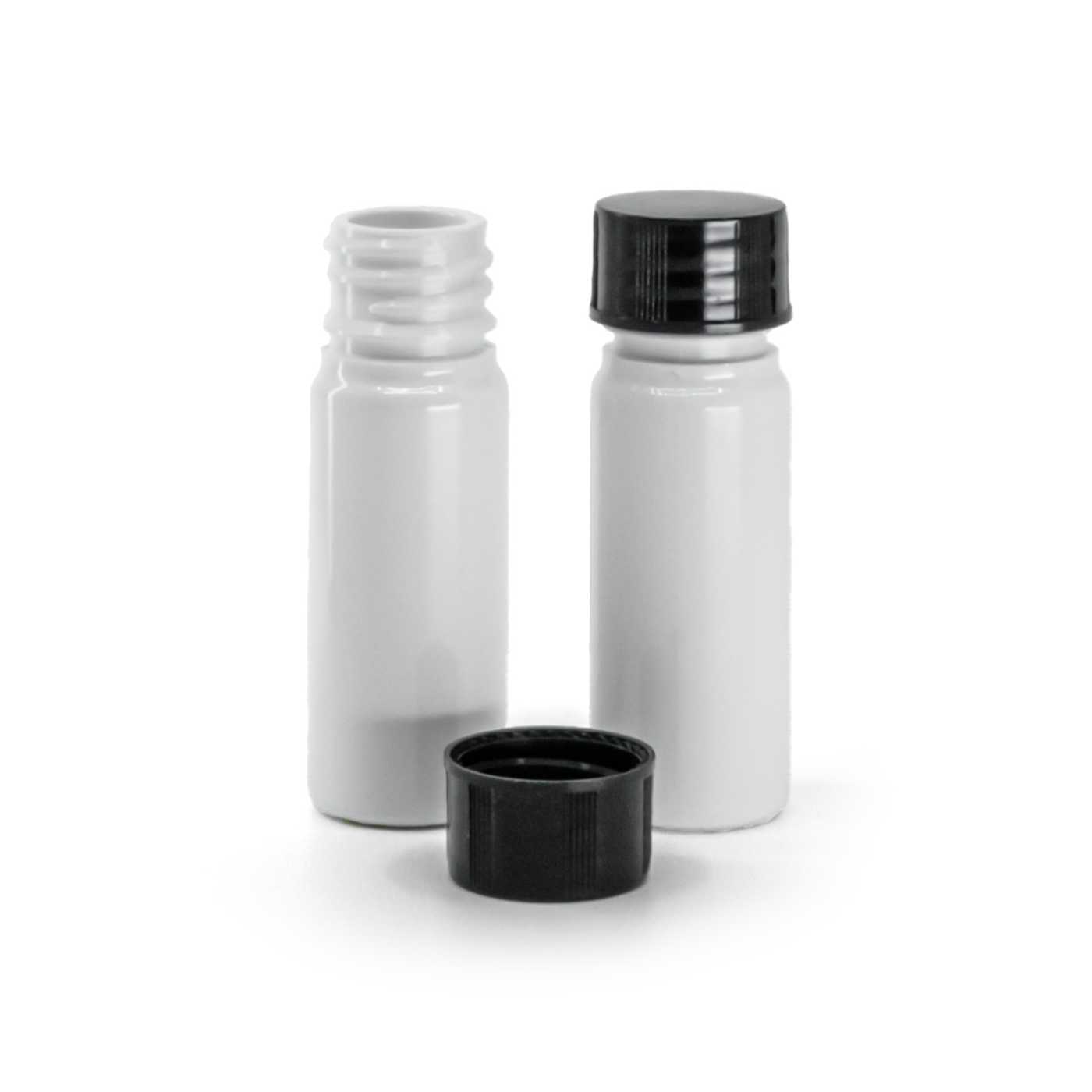 Fehér műanyag flakon fekete kupakkal 10 ml
