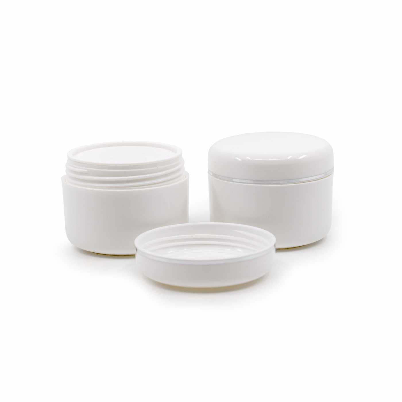 Fehér műanyag kozmetikai tégely, dupla fallal, 50 ml