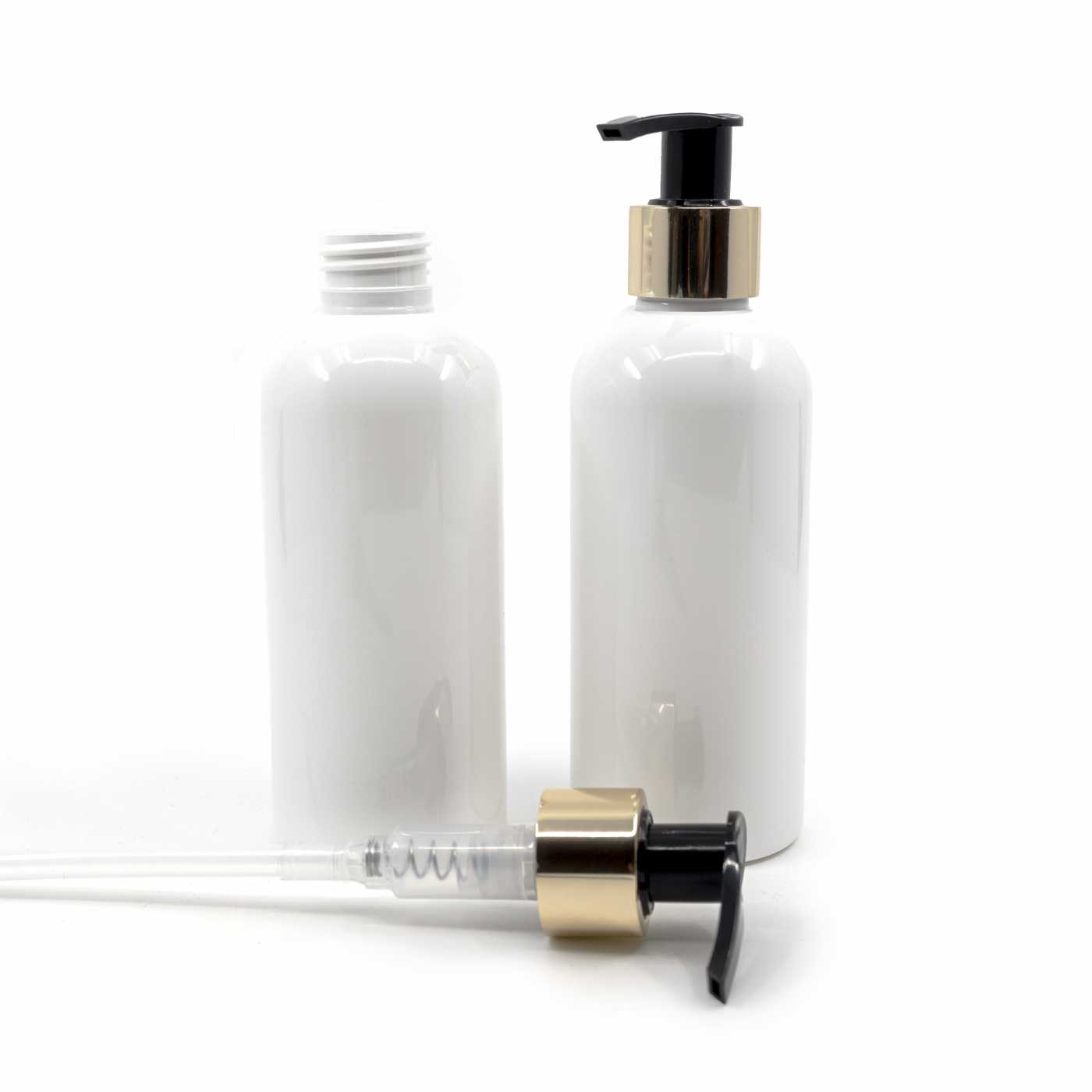 Fehér műanyag palack 300 ml arany adagoló pumpával