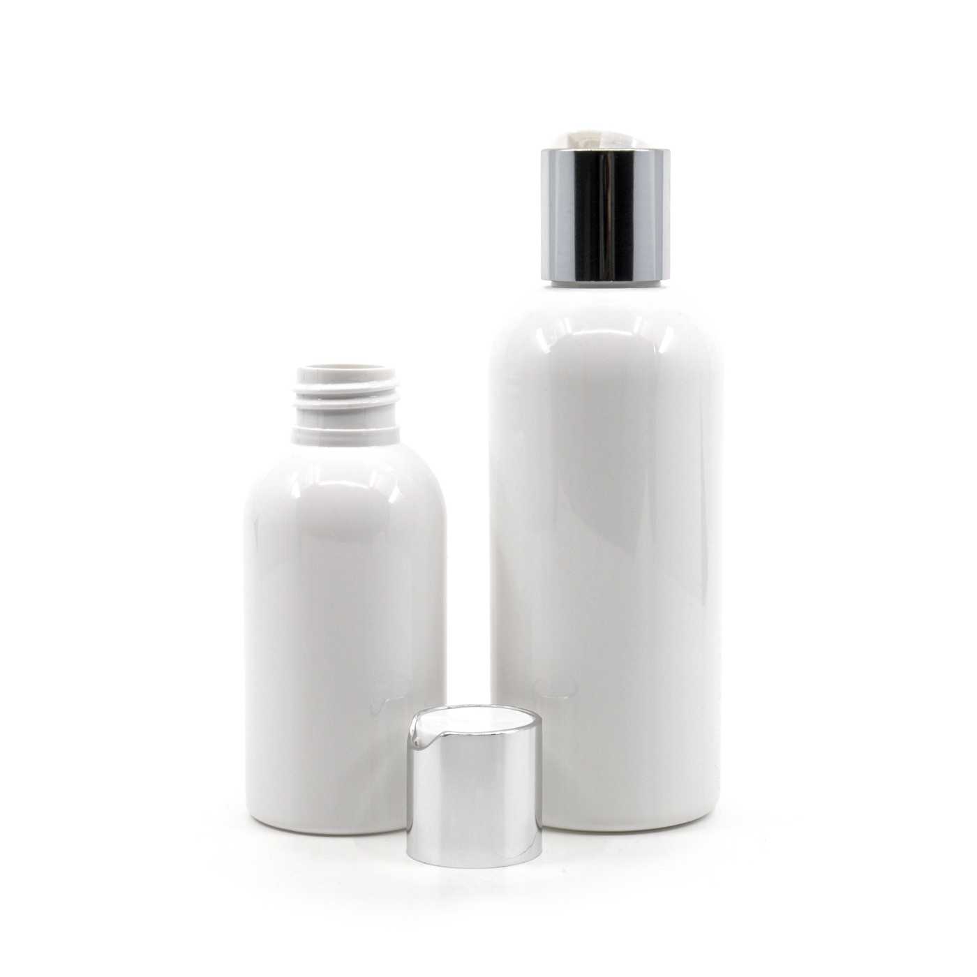 Fehér műanyag palack ezüst flip-top kupakkal 150 ml