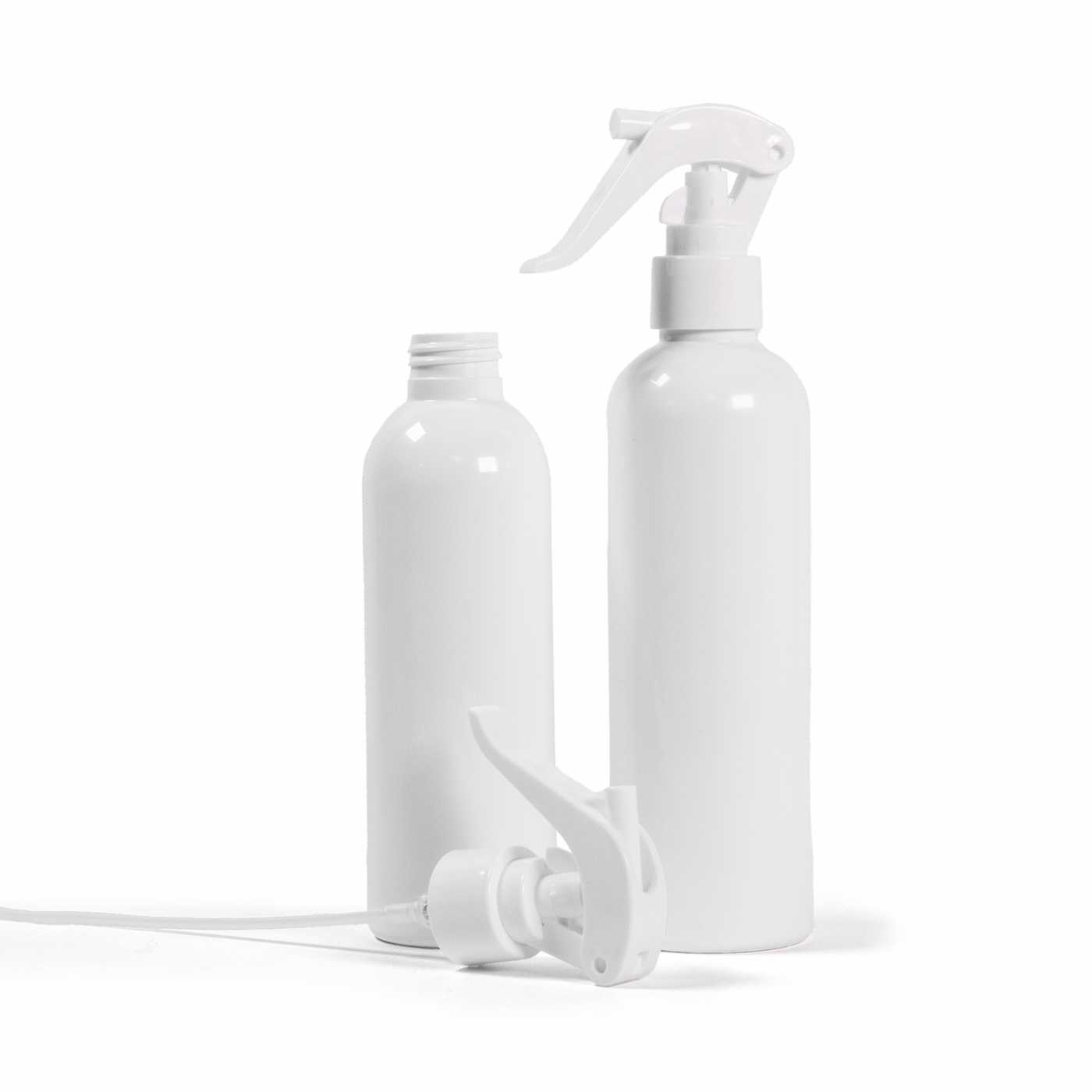 Fehér műanyag palack fehér ravaszos permetezőfejjel 250 ml