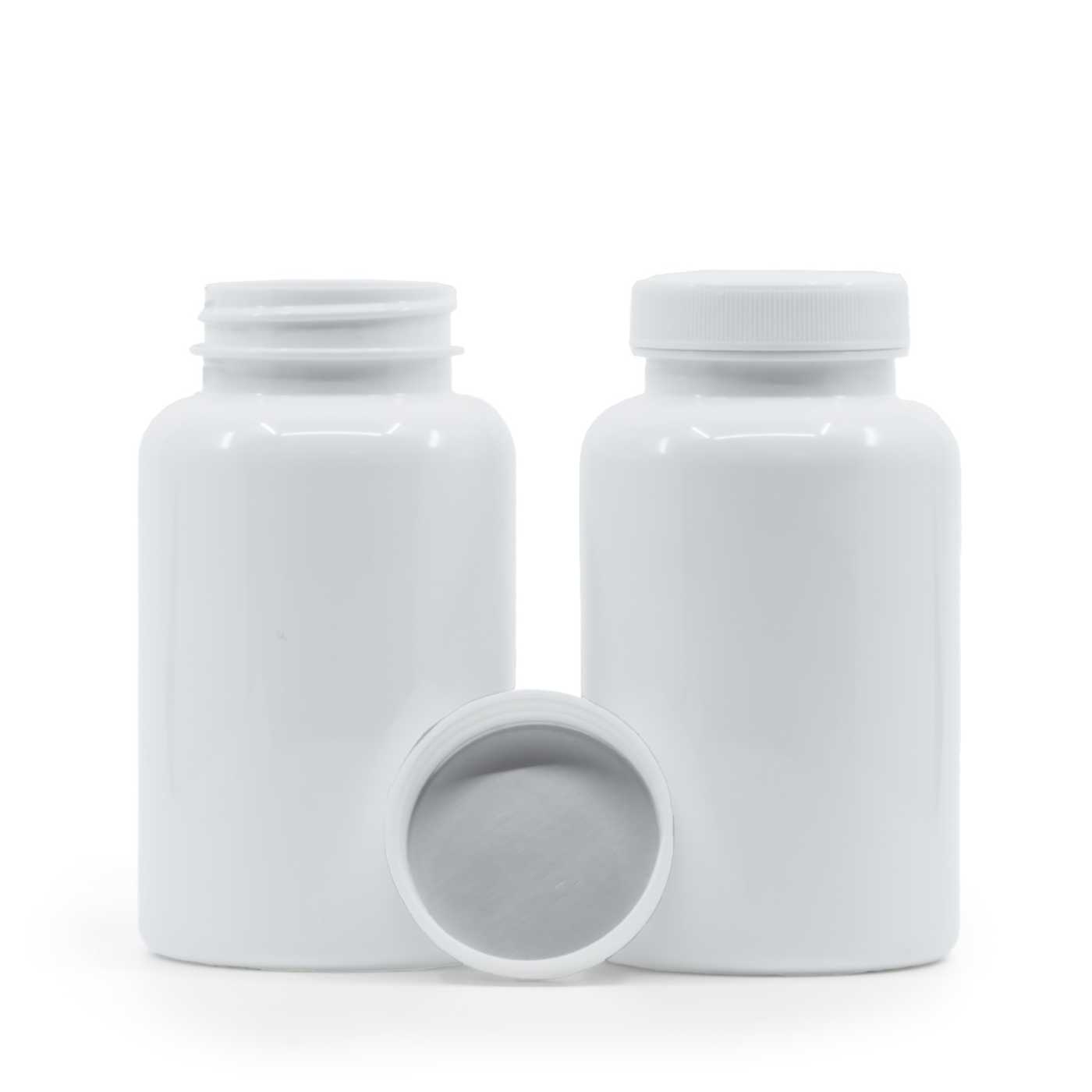 Fehér műanyag tablettás tégely, fehér kupak, indukciós zárófólia, 250 ml
