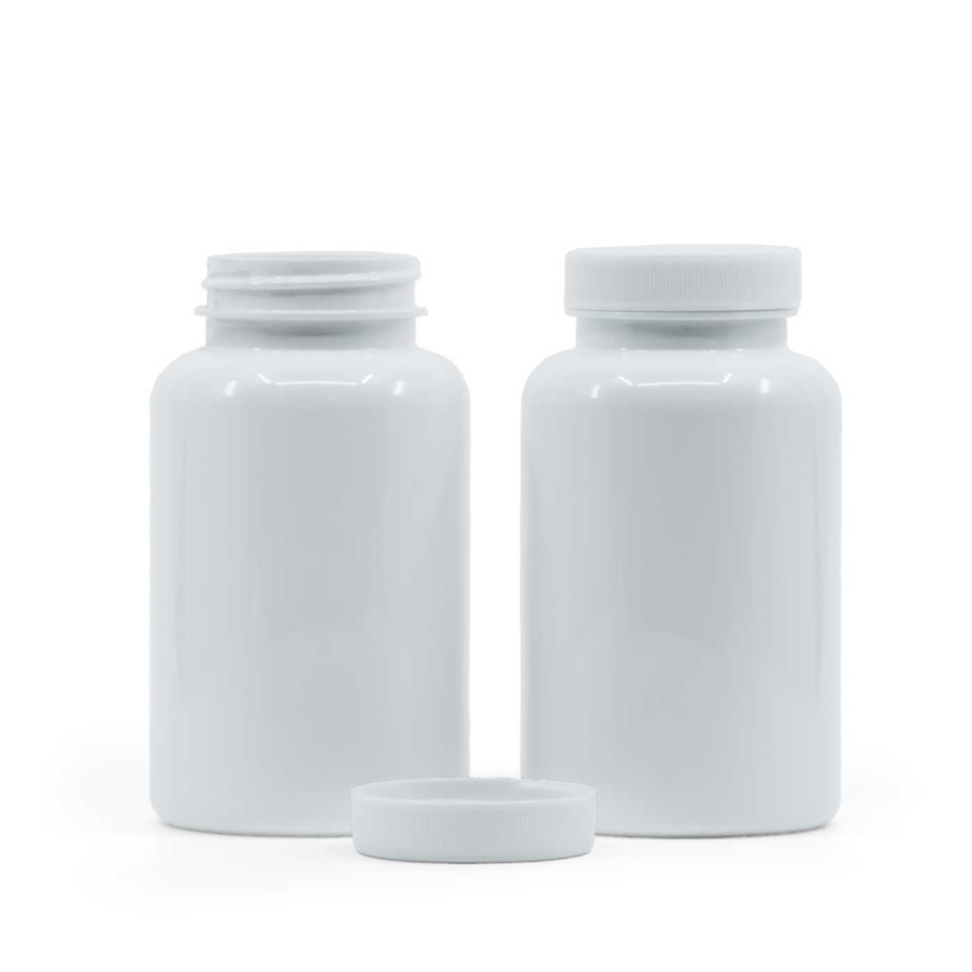 Fehér műanyag tablettás tégely fehér kupakkal, 250 ml