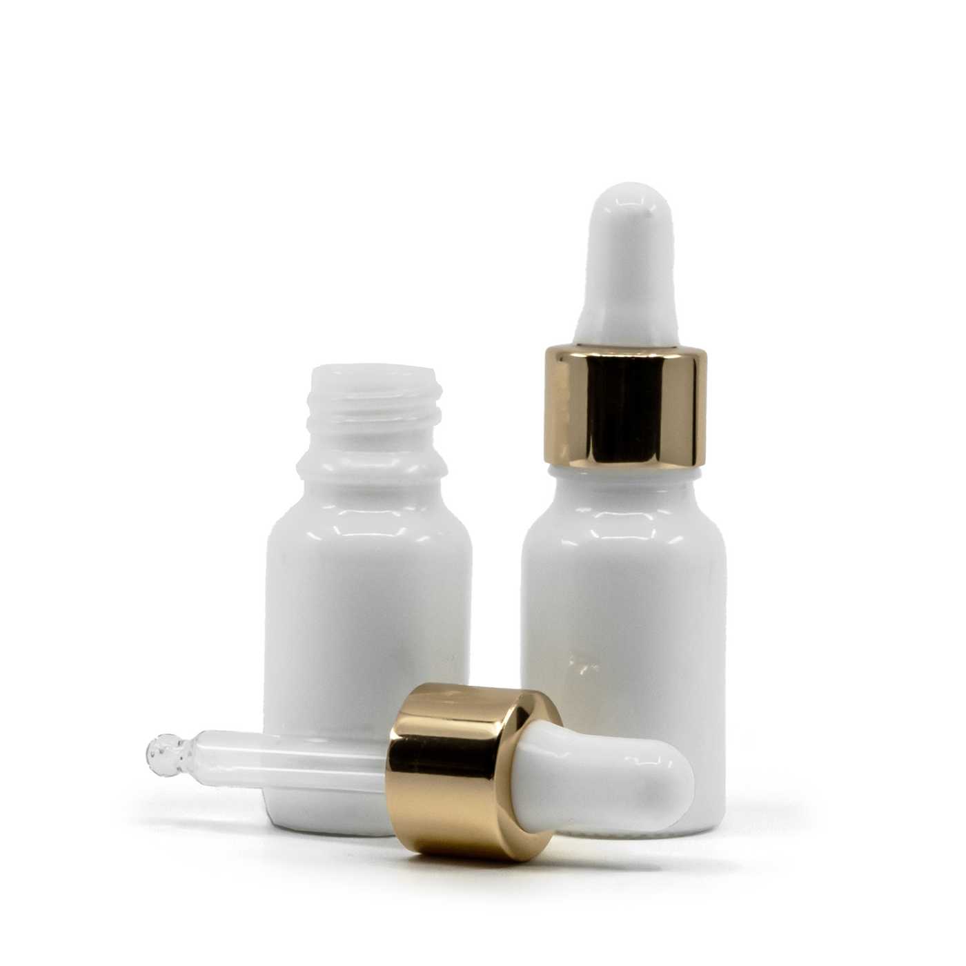 Fehér üvegpalack, fehér-arany cseppentő, 10 ml