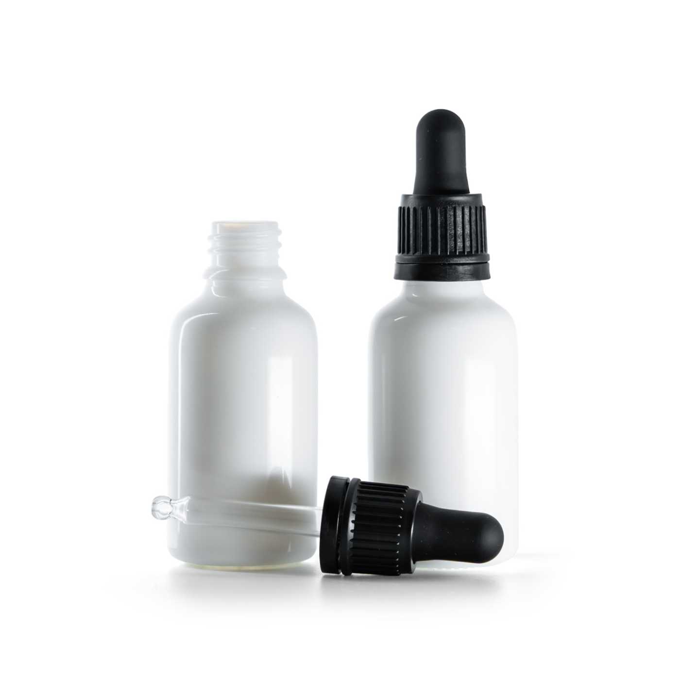 Üveg fiola – fehér üveg gyógyszeres cseppentős üveg fekete pipettával professzionális csomagolóanyag, amely ideális különféle folyékony készítmények pontos adag... teljes leírás