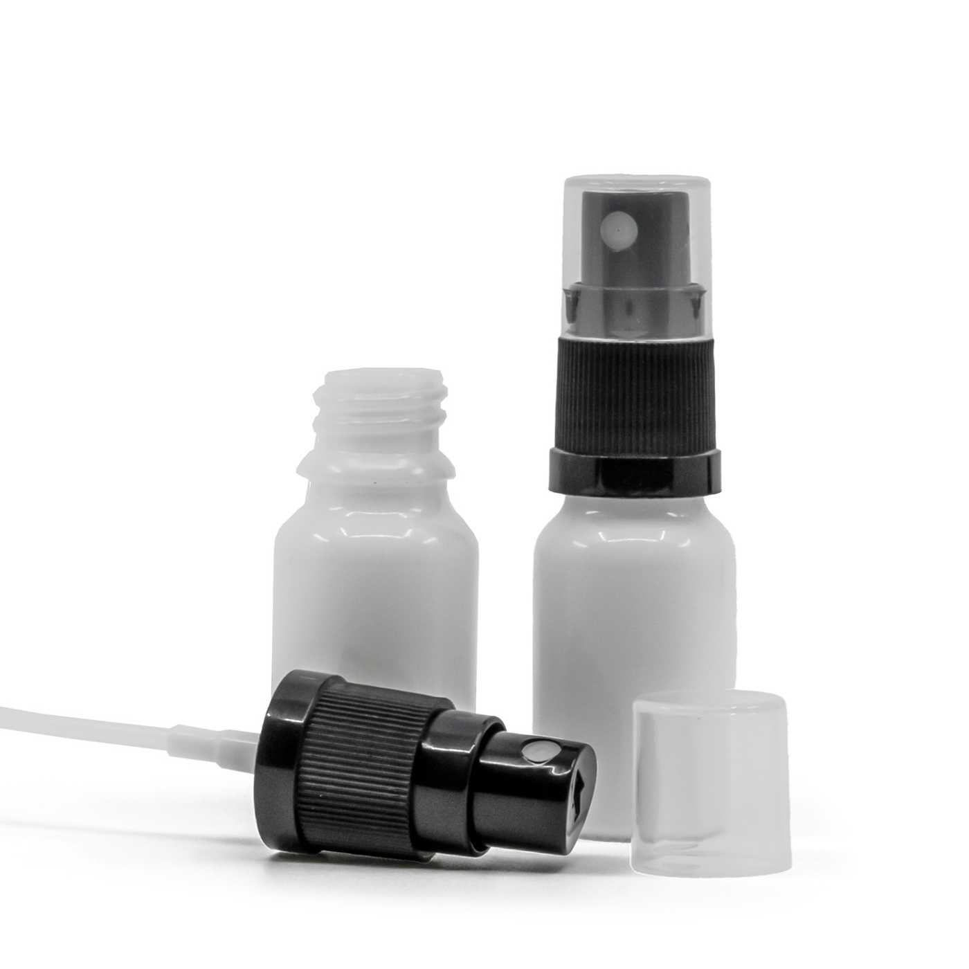 Fehér üvegpalack fekete permetezőfejjel 10 ml