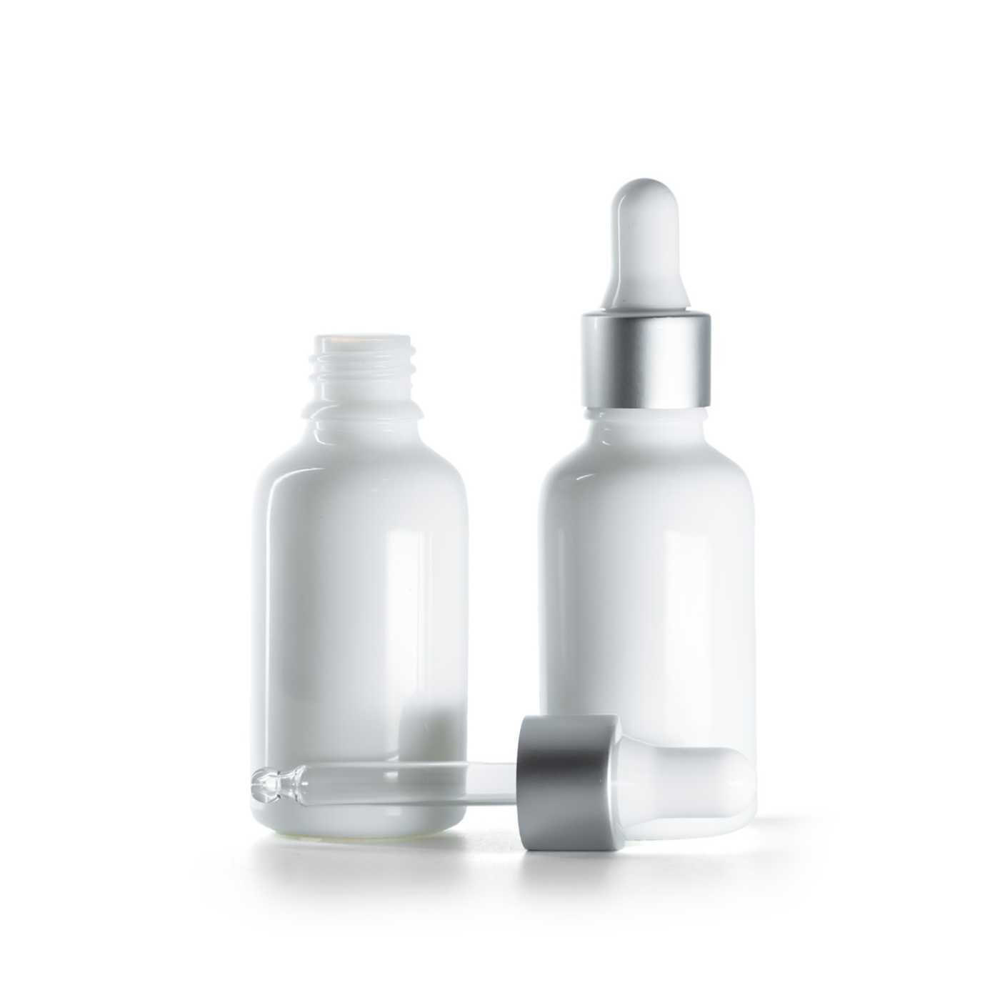 A fehér felületű üveg gyógyszeres üveg matt ezüst cseppentővel elegáns és professzionális csomagolás, amely ideális koncentrált folyadékok cseppenkénti adagolás... teljes leírás