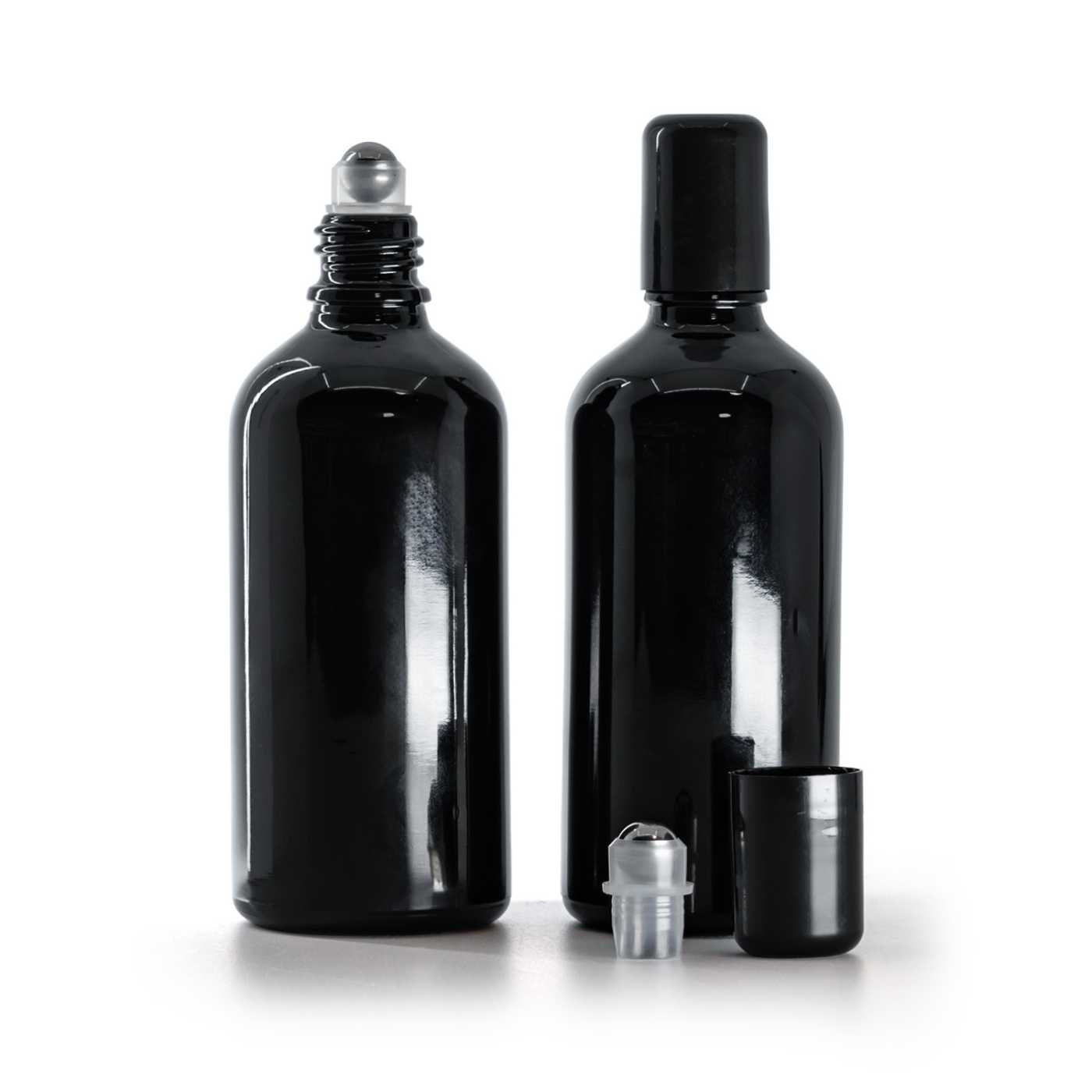 Fekete fényes üveg roll-on palack 100 ml