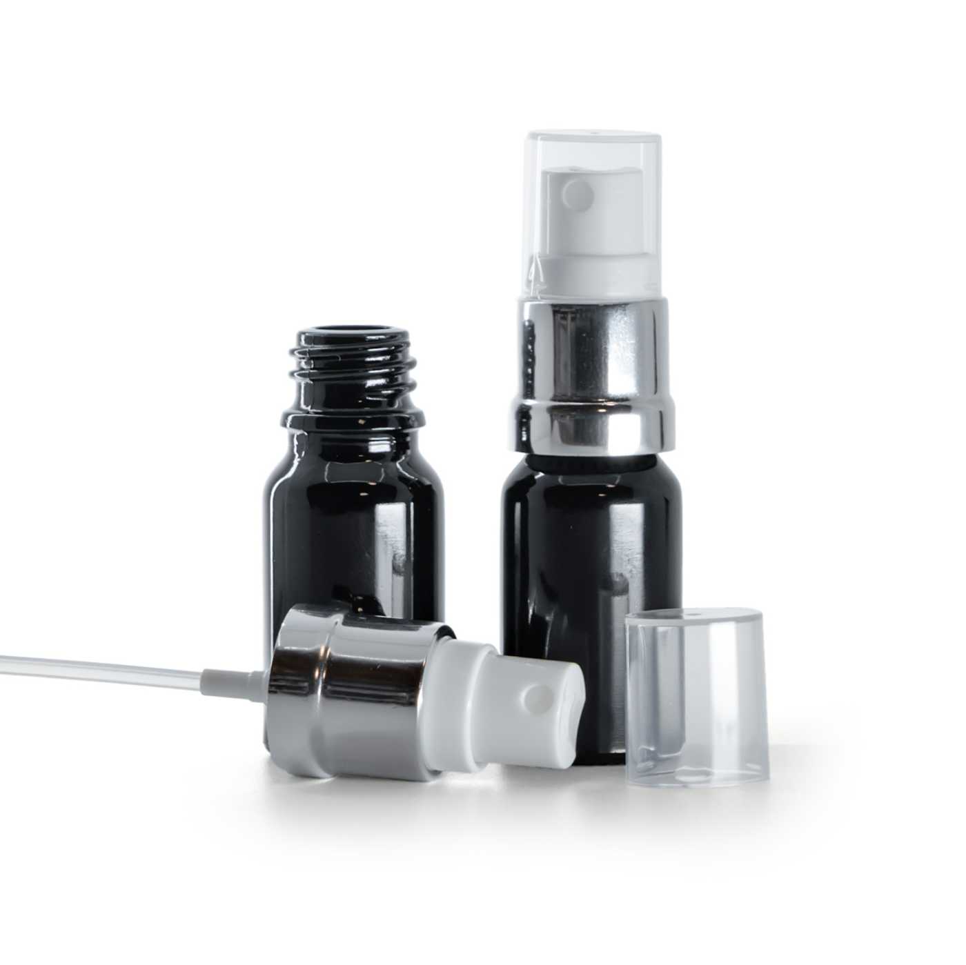 Az üvegpalack, fekete fényes, fehér-ezüst porlasztó egy kompakt és professzionális csomagolás, amelyet folyékony termékek finom köd formájában történő csomagolá... teljes leírás