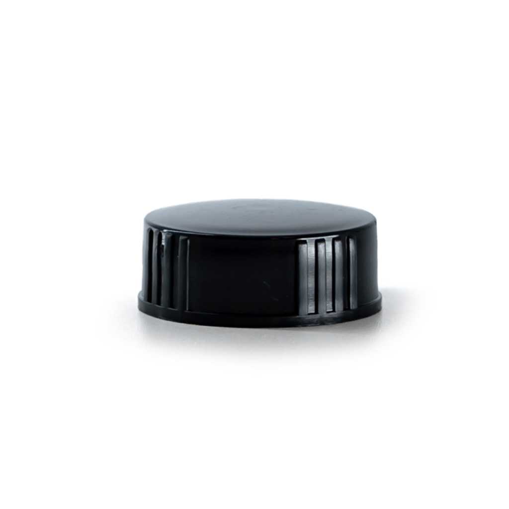 Fekete műanyag alacsony fedél 480 ml-es és 1000 ml-es üvegpalackokhoz. Szín: feketeAnyag: 1,5 mm: PPÁtmérő: 28/400