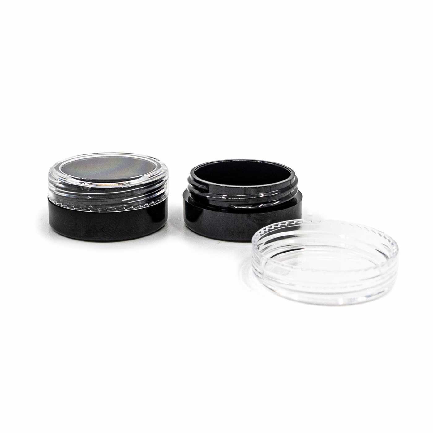 Fekete műanyag kozmetikai tégely átlátszó tetővel, 3 ml