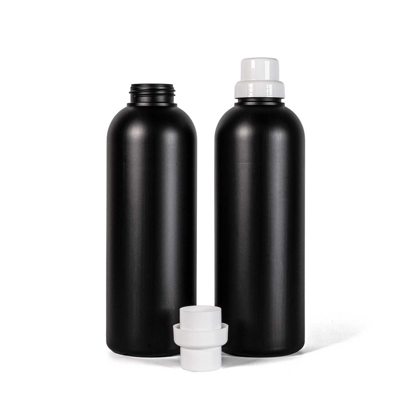 Fekete műanyag palack 1 l fehér kupakkal 42 mm