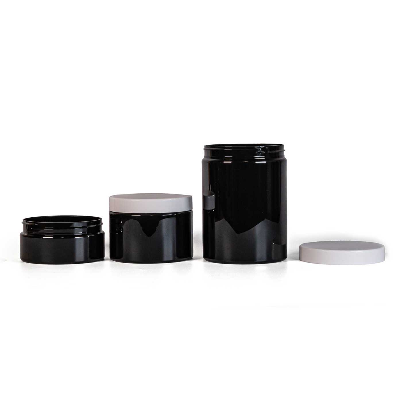 Fekete műanyag tégely, fehér kupak, 300 ml