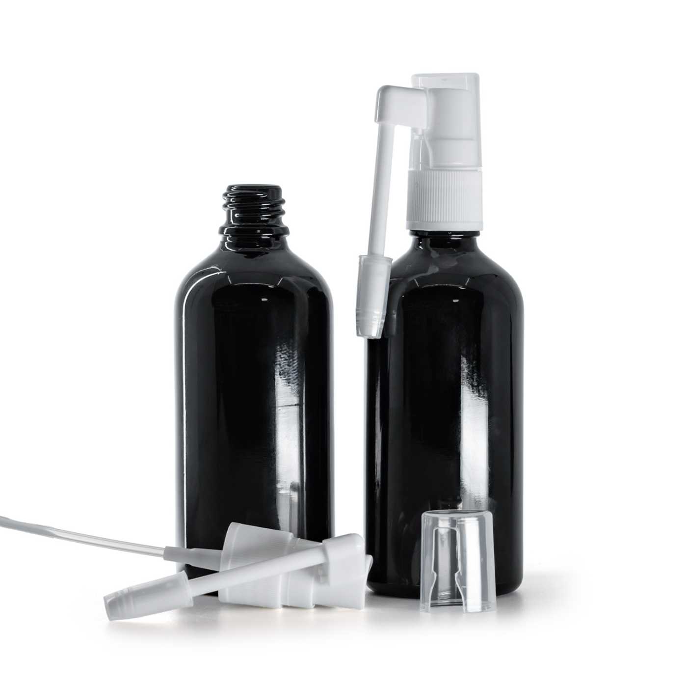 Fényes fekete üvegpalack, szájpermet, 100 ml