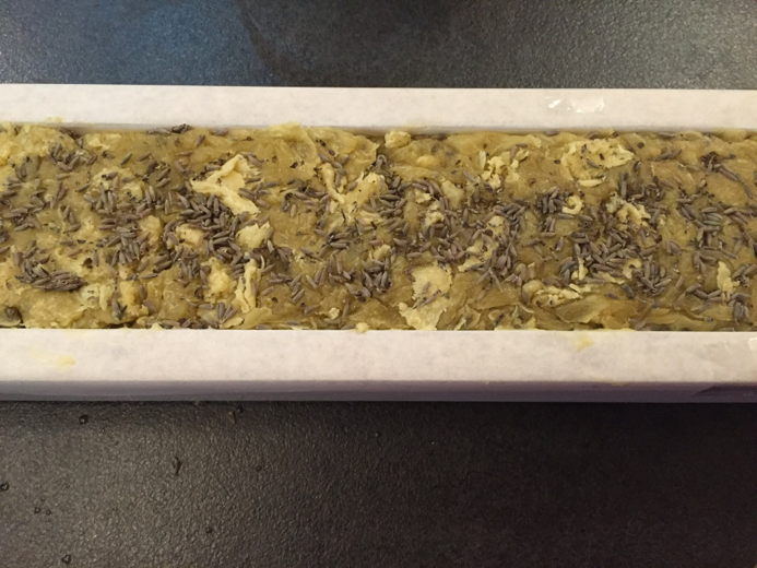 13. Öntsük a szappant sütőpapírral bélelt tepsibe, mi szárított levendulavirágot használtunk a díszítéshez. Fedjük le a kész szappant, és hagyjuk pihenni 24 órán át.