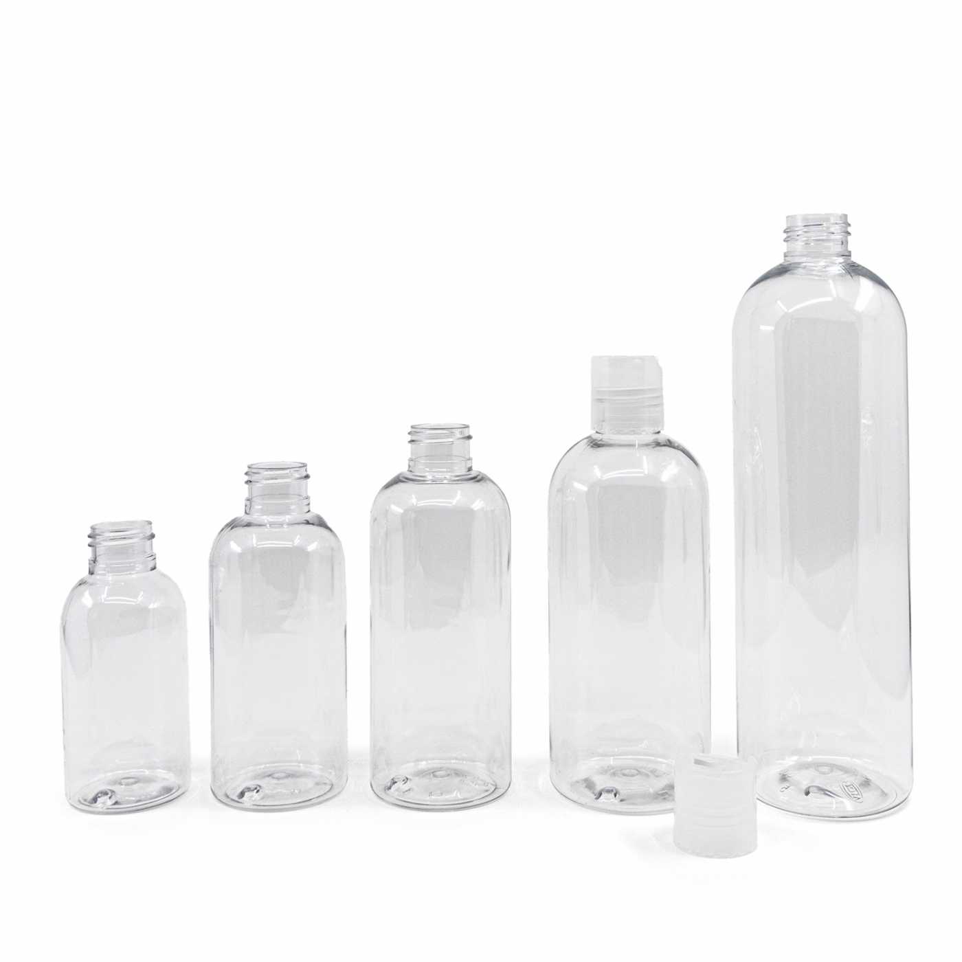 Kerek, átlátszó műanyag palack 500 ml átlátszó disc-top kupakkal 24/410