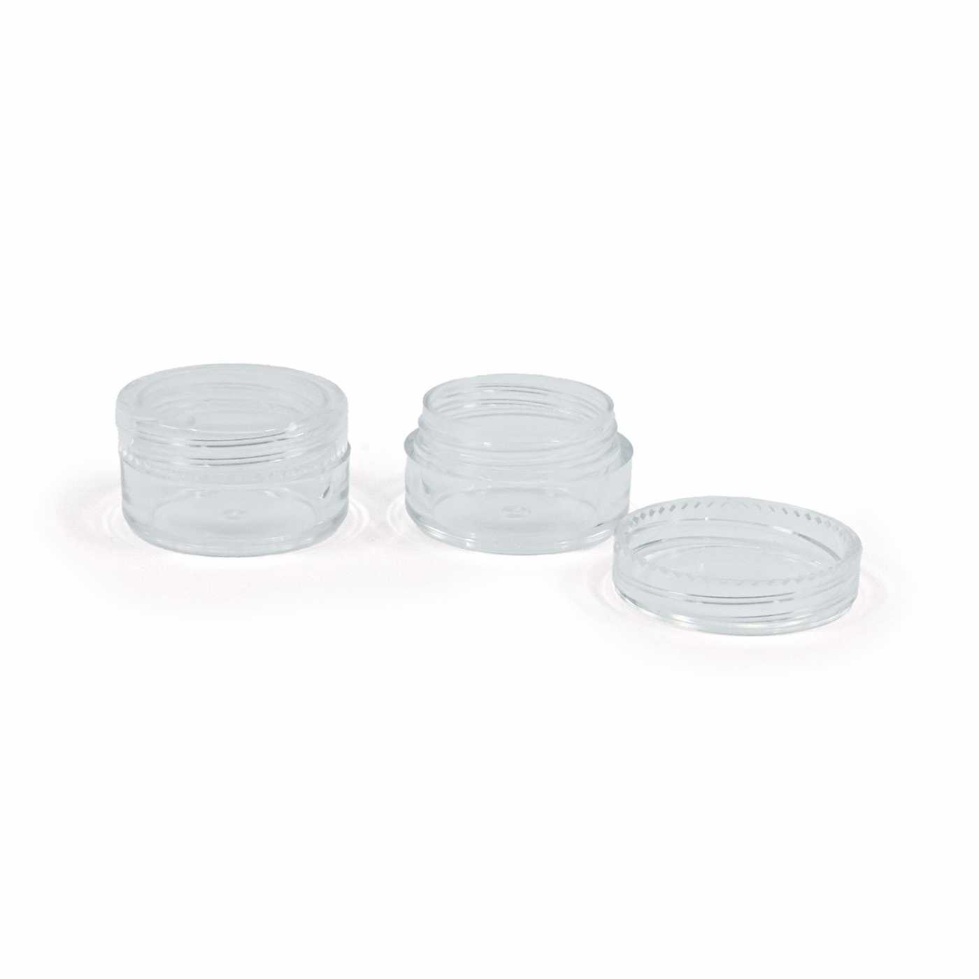 Átlátszó műanyag pohár csavaros kupakkal, 5 ml térfogattal.
