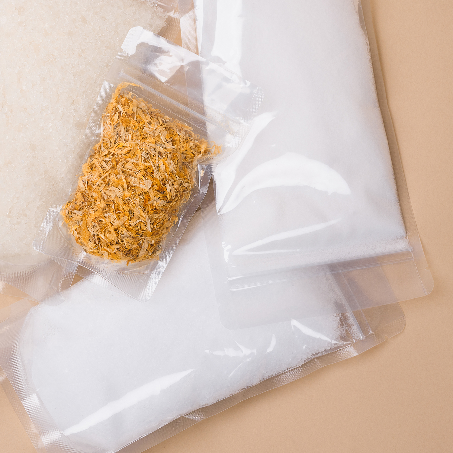 Zacskók az elkészített fürdősók csomagolásához