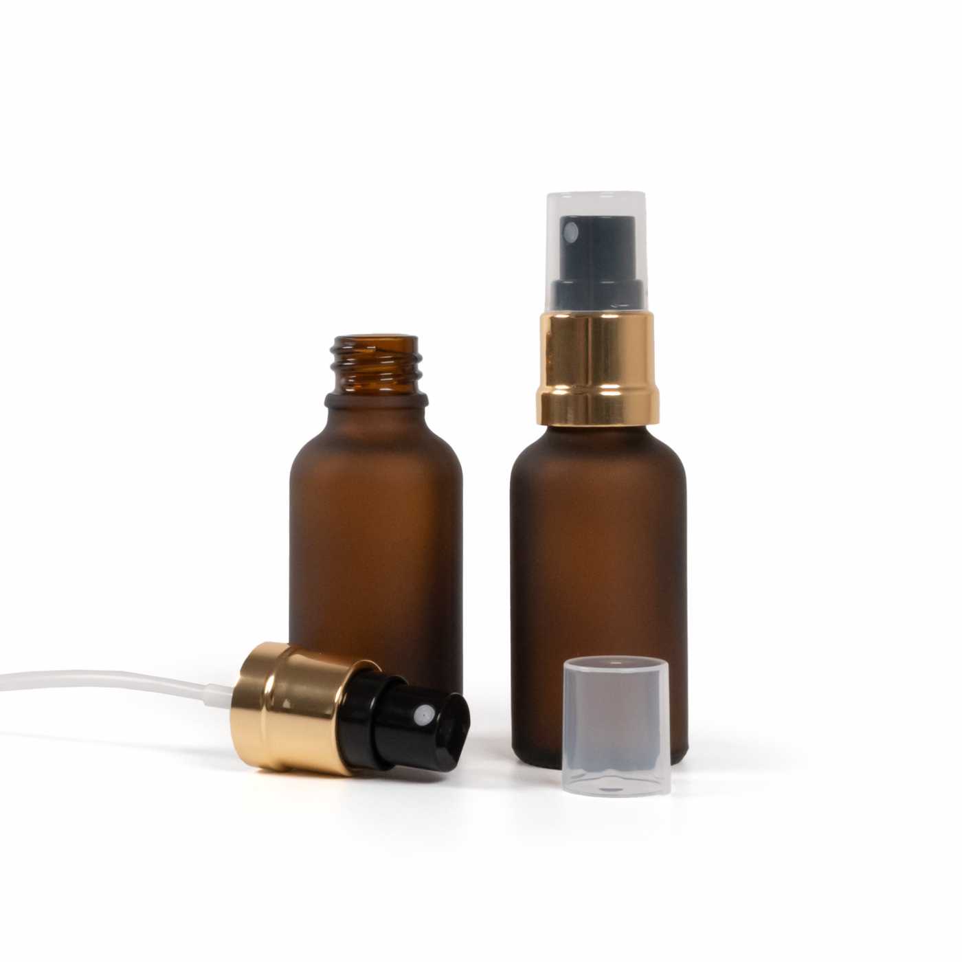 Matt borostyánsárga üvegpalack, fekete-arany permetezőfej, 30 ml
