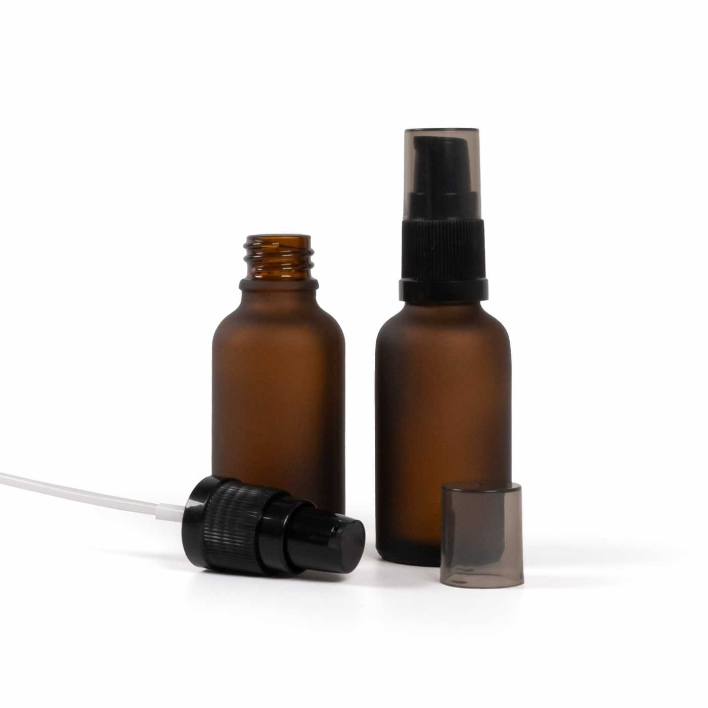Matt borostyánszínű üvegpalack, krémadagoló pumpa smokey kupakkal, 30 ml