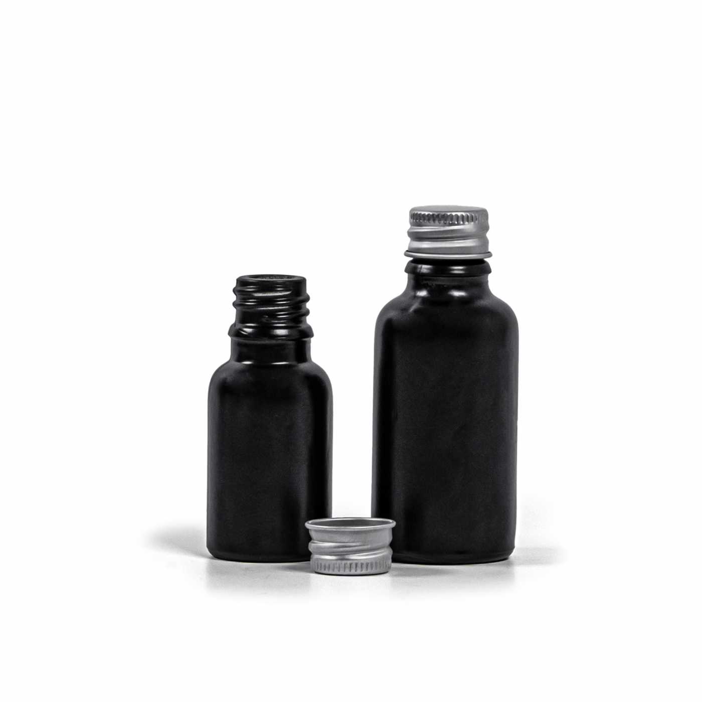 Matt fekete üvegpalack, alumínium kupak, 30 ml
