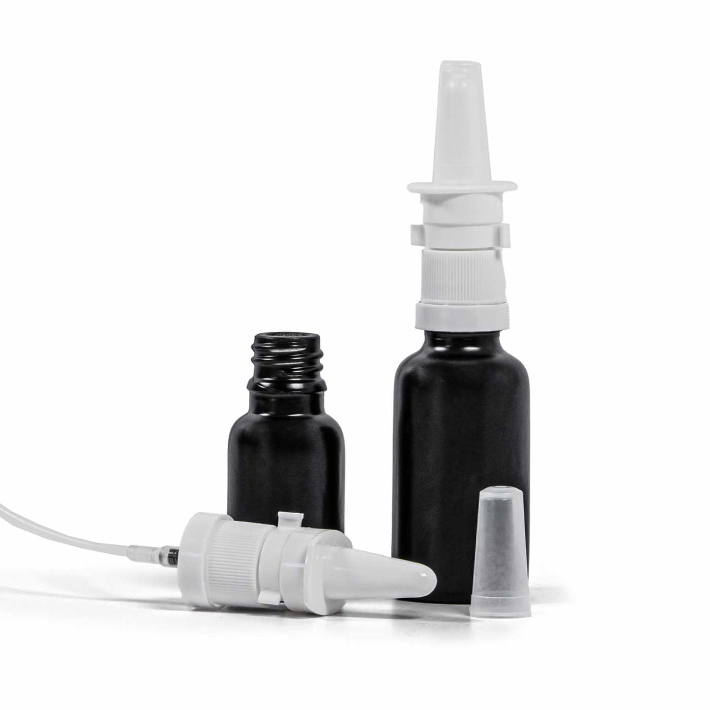 Matt fekete üvegpalack, orrspray adagolóval, 15 ml