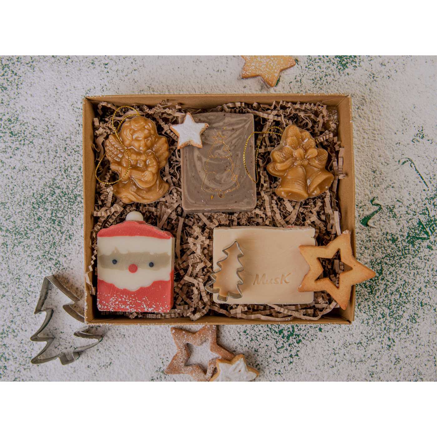Gyönyörű illatú, természetes karácsonyi szappanok készlete, amely azonnal ünnepi hangulatot teremt a fürdőszobában és a karácsonyfa alatt. A minőségi növényi olajokból kézzel készített szappanok gyengéden tisztítják a bőrt, miközben védik a kiszáradástól.