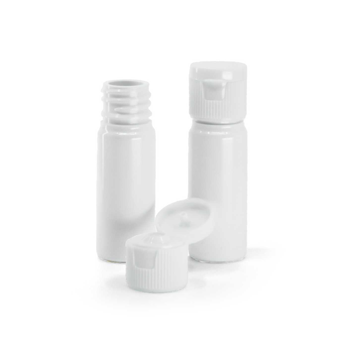 Műanyag flakon, fehér, 18 mm, flip-top kupak, fehér, 10 ml