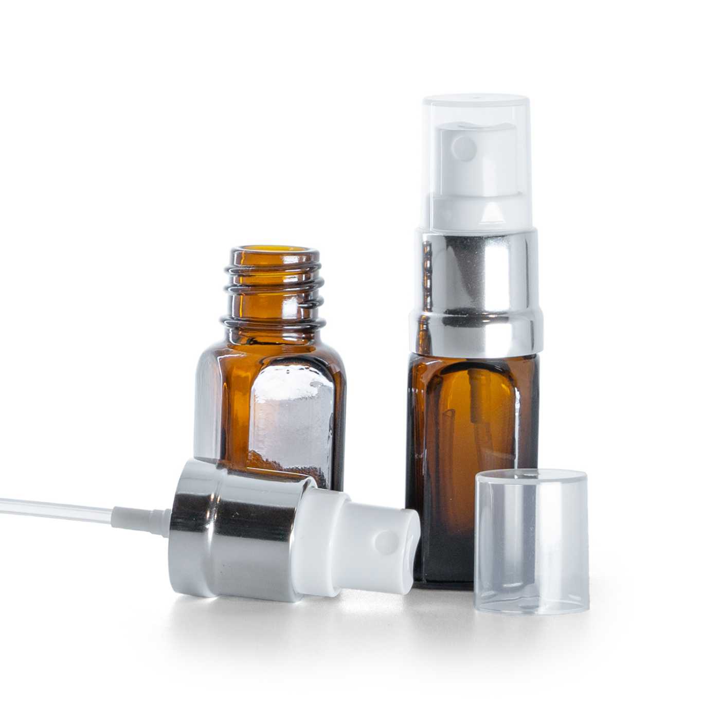 Szögletes üvegpalack fehér ezüst permetezőfejjel, 10 ml