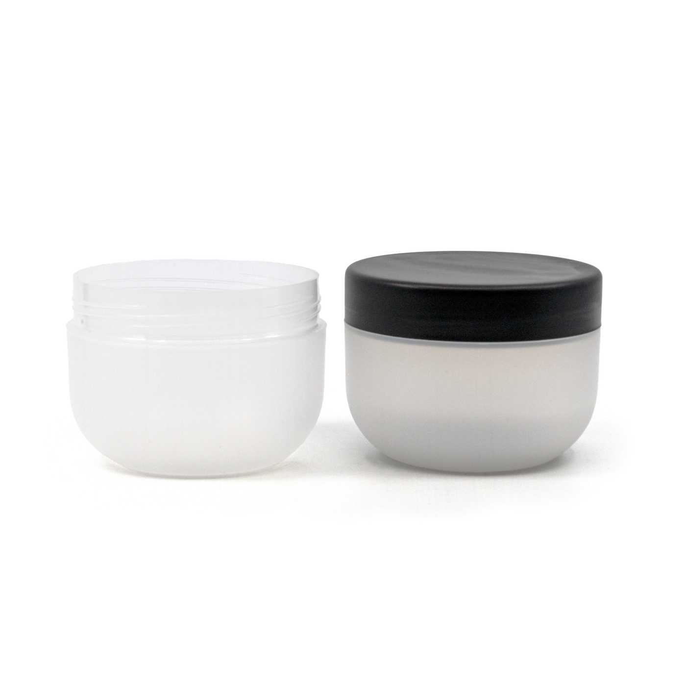 Tejüveg hatású műanyag tégely fekete kupakkal, 200 ml